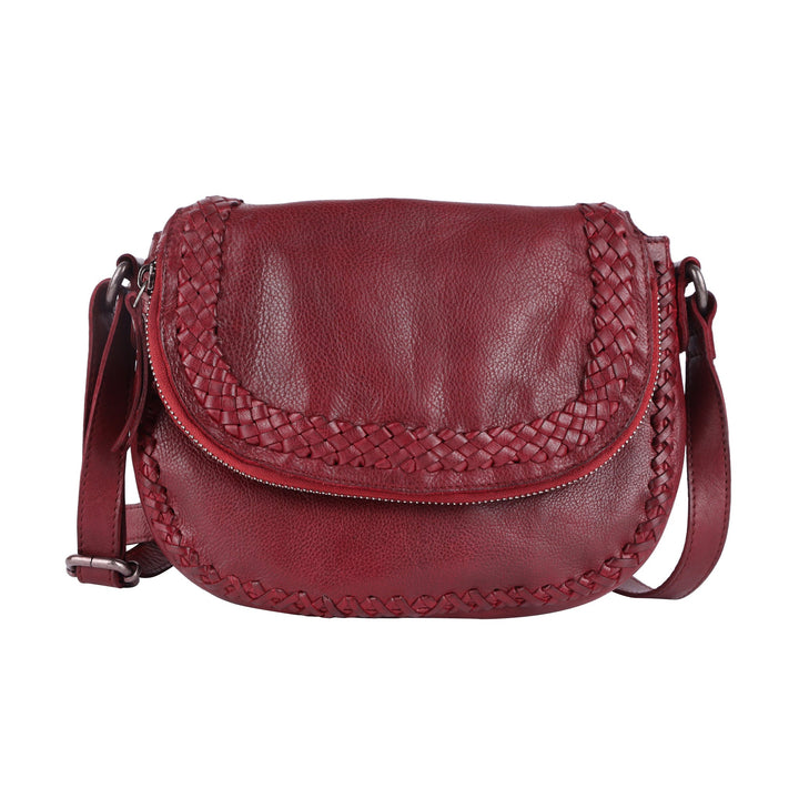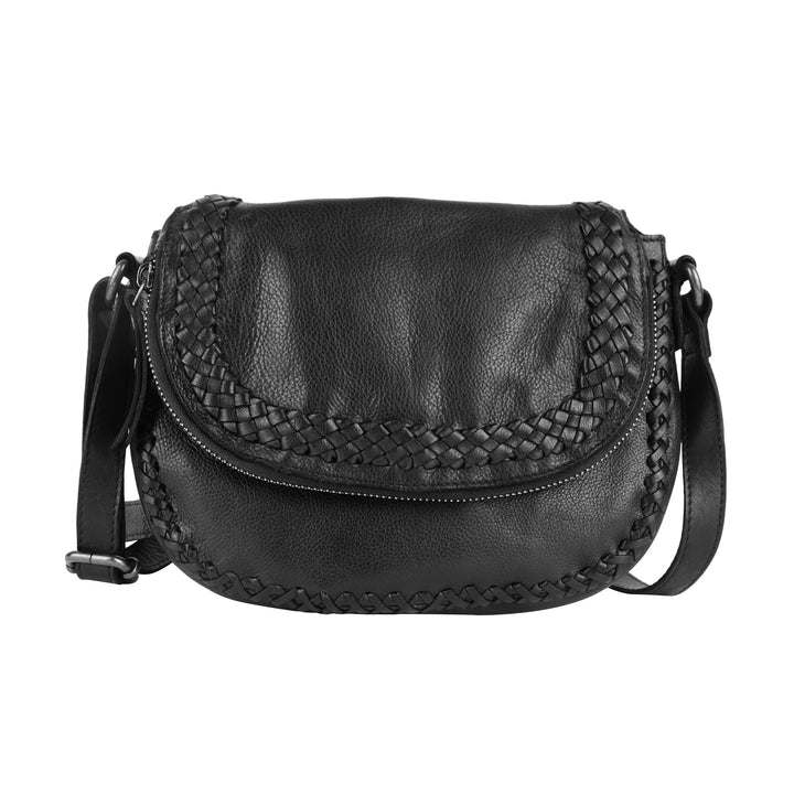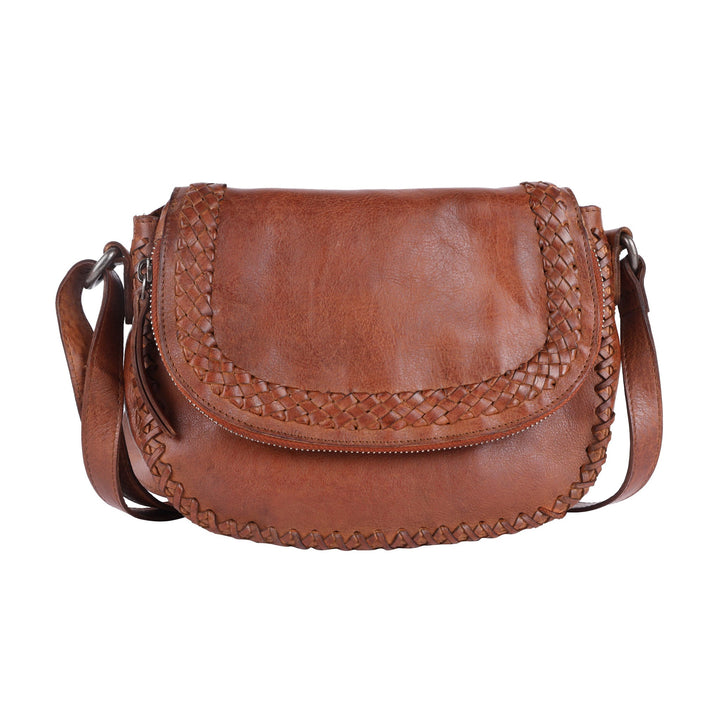 Fit all your essentials in this every day, hands-free bag trimmed with beautifully crafted, hand-braided leather.  Unexpected zippered front flap doubles as a 12”h x 6”L storage pocket! Travel light and look amazing with this five star, go-to-crossbody!
