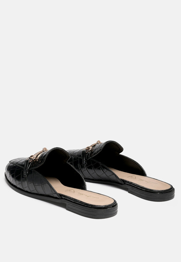 Croc Patterned Faux Leather Mules with metallic buckles on top are all trendy. The high-quality mules from London Rag are worth every dollar spent.