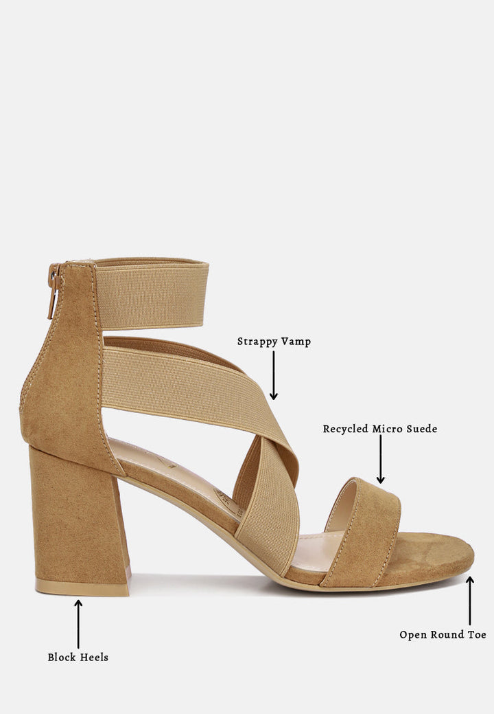 benicia elastic strappy block heel sandals by London Rag