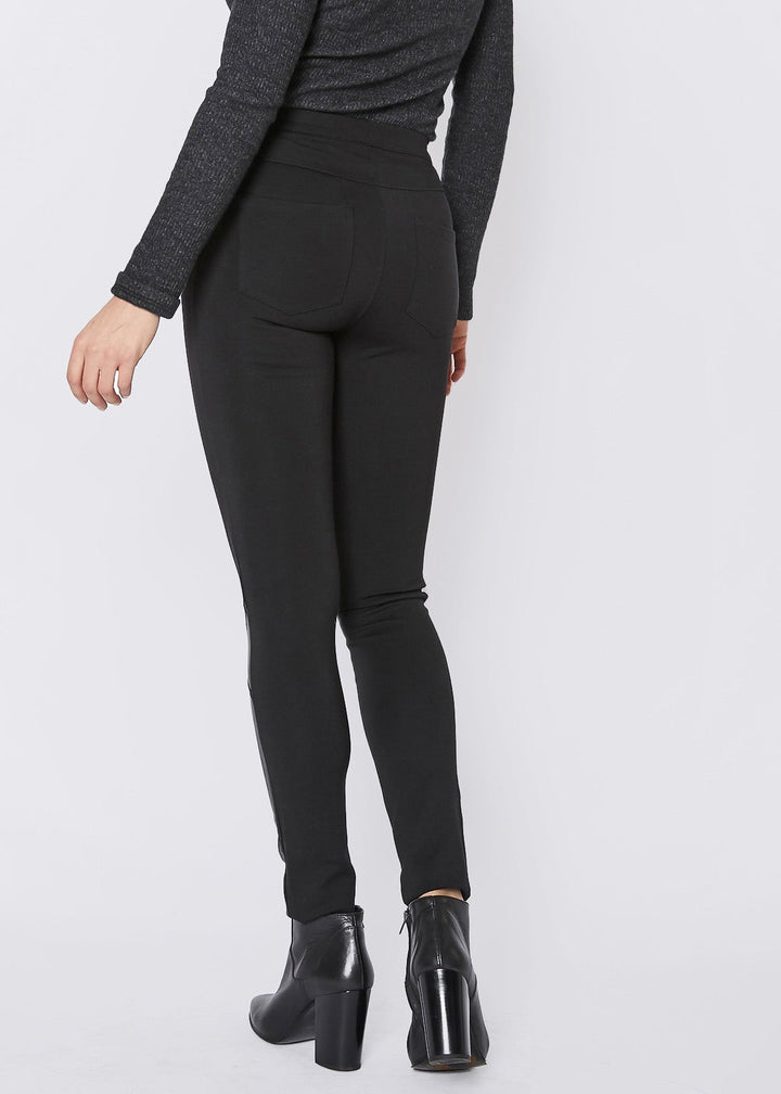 Black Leather Contrast Skinny Pants by Shop at Konus