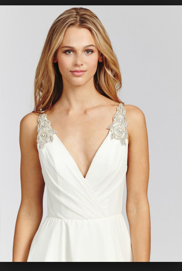 Sale wedding dresses, bridal party dresses and bridal accessories come to us directly from small independent retailers and brands and are mostly discontinued samples.  This merchandise has never been previously purchased or altered, and while most of these goods are in immaculate condition normal wear and tear can occur during previous try on.  Any defects outside of normal wear are disclosed in each listing.