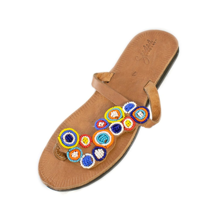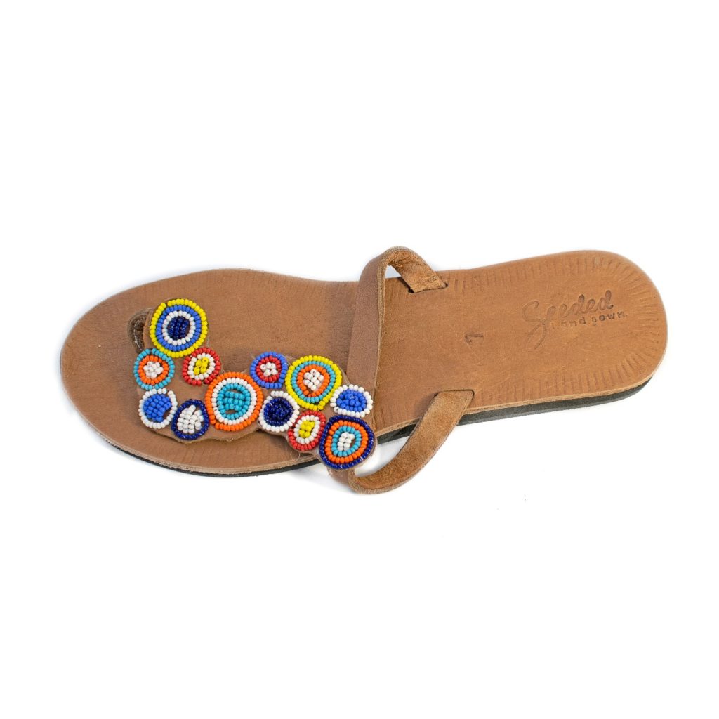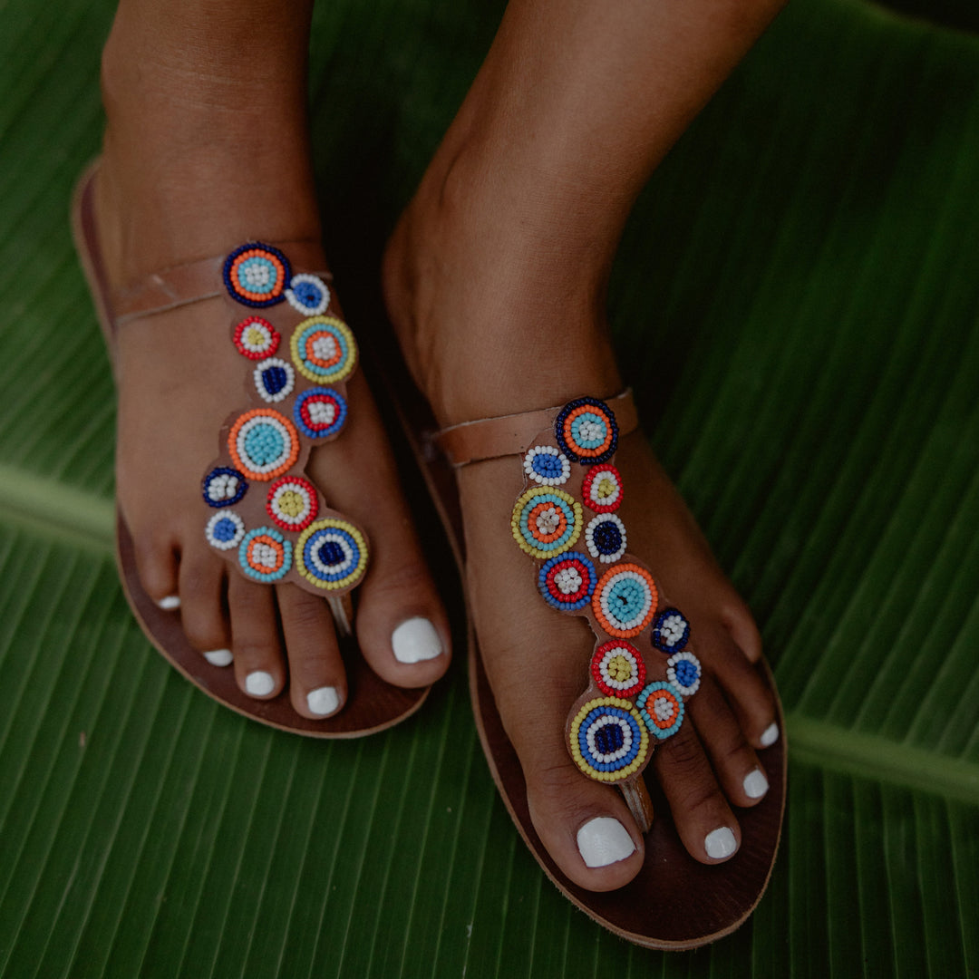 Each pair of Swahili Coast sandals is ethically handmade by the fairly-paid, empowered artisans of the Swahili Coast Co-operative. They are crafted from natural, free-range Tanzanian leather that is sourced locally to our cooperative. Our talented partner artisans stitch high-quality beads onto the sandals using a monofilament line that is similar to fishing line.