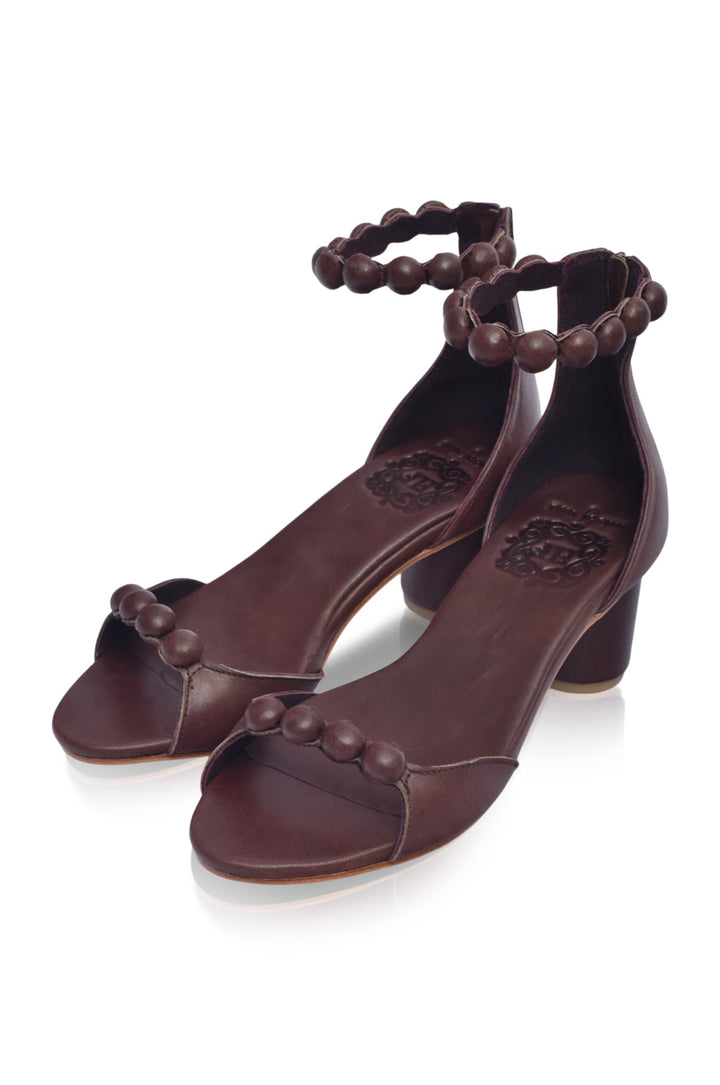 Add these show steeling low heel sandals to your Summer shoe repertoire. Designed with leather-covered buttons on the upper and matching leather heel, they are low enough to save your feet while not lacking on the glam.