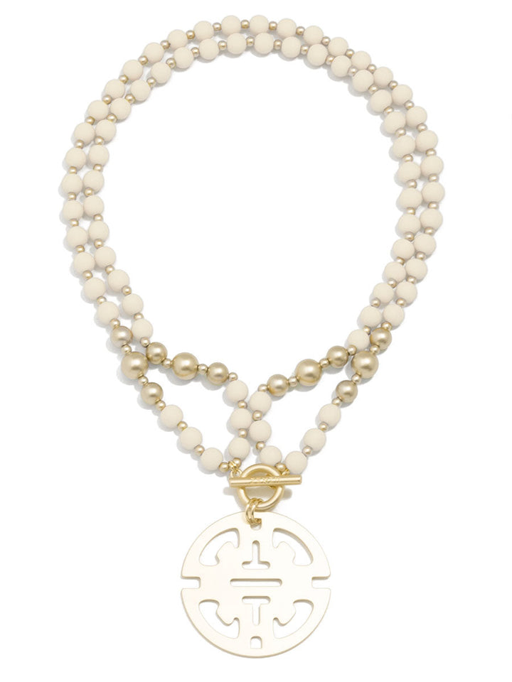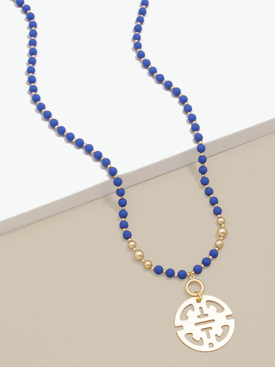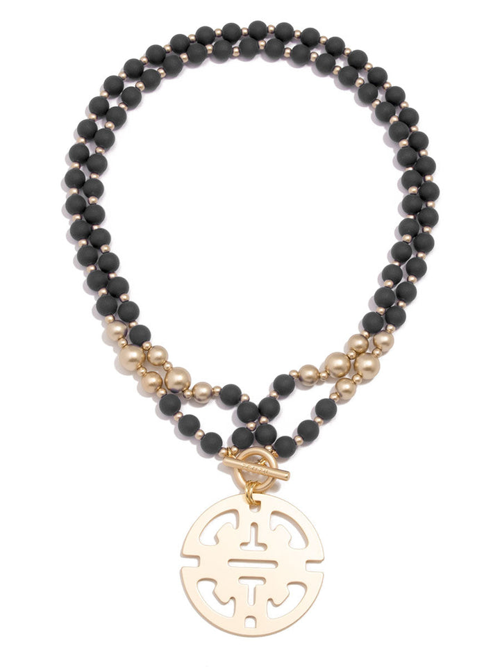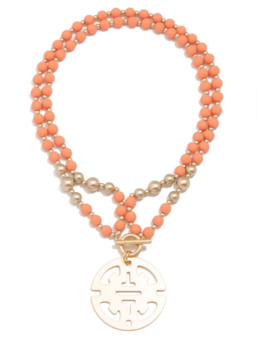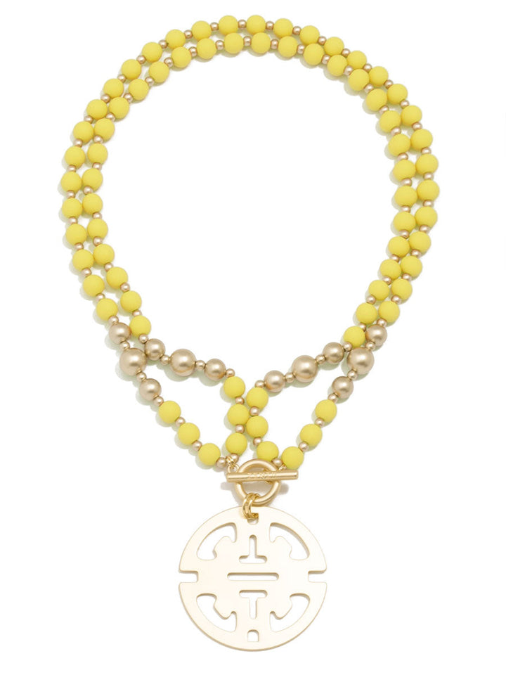 We love a 2 in 1 style! This resin beaded beauty can be worn long or short and features our popular traveling medallion pendant for an extra shot of personality.