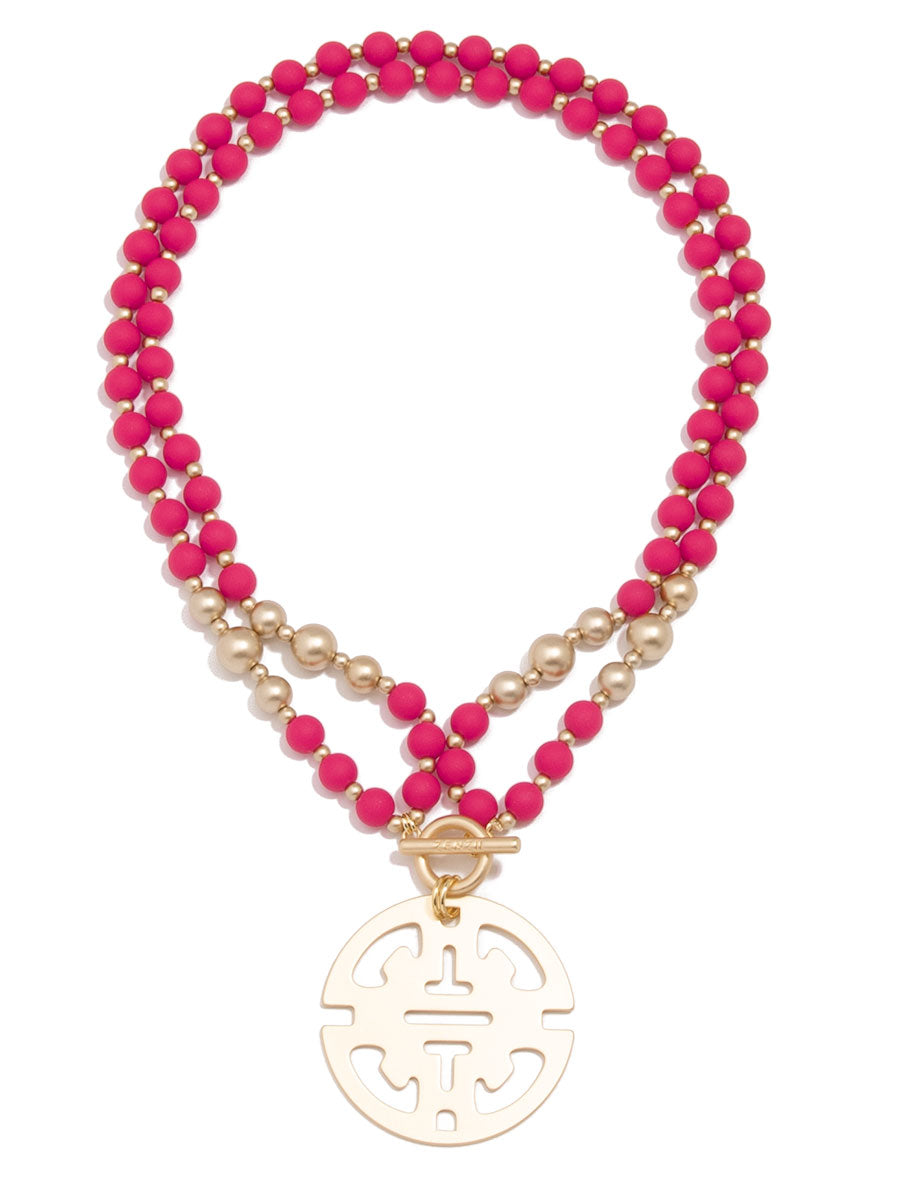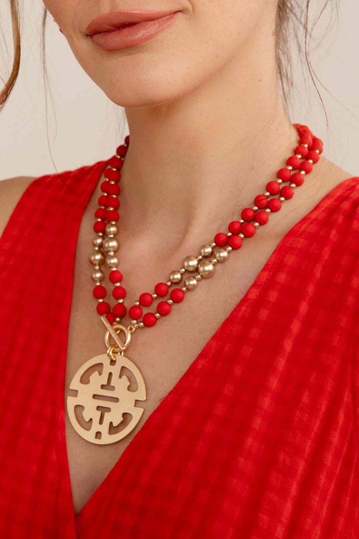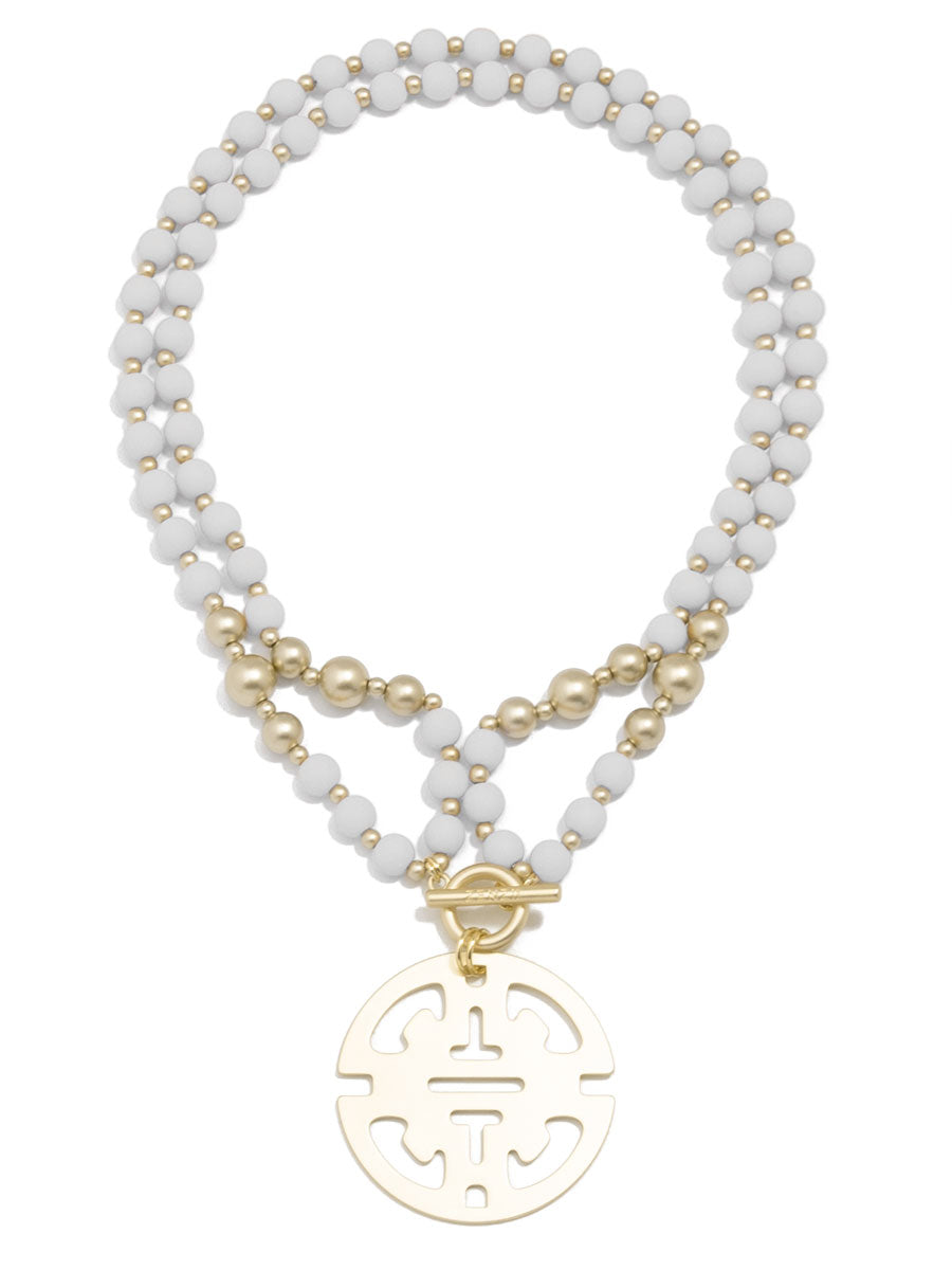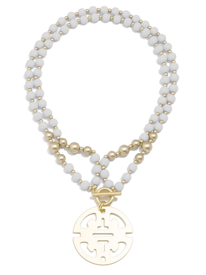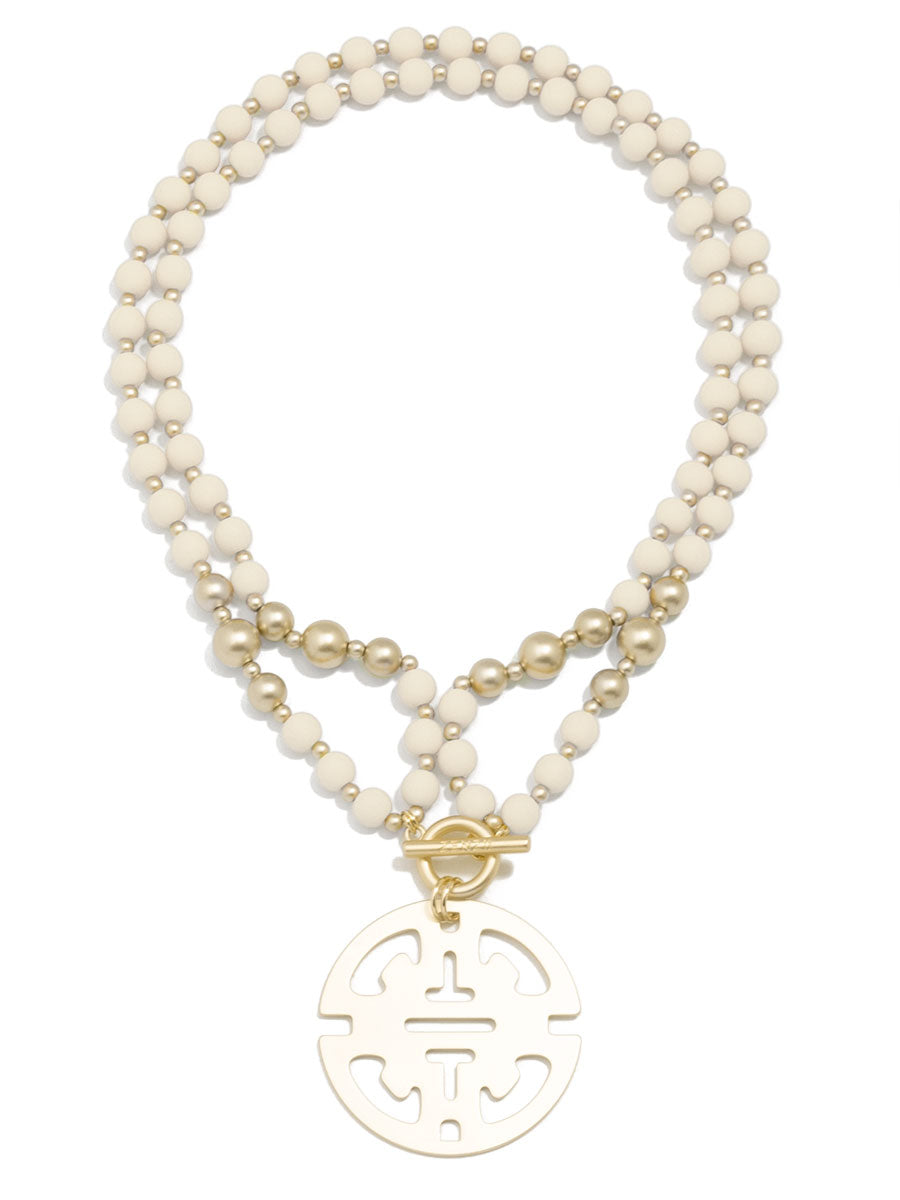 We love a 2 in 1 style! This resin beaded beauty can be worn long or short and features our popular traveling medallion pendant for an extra shot of personality.