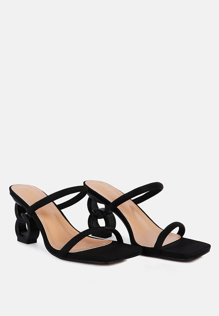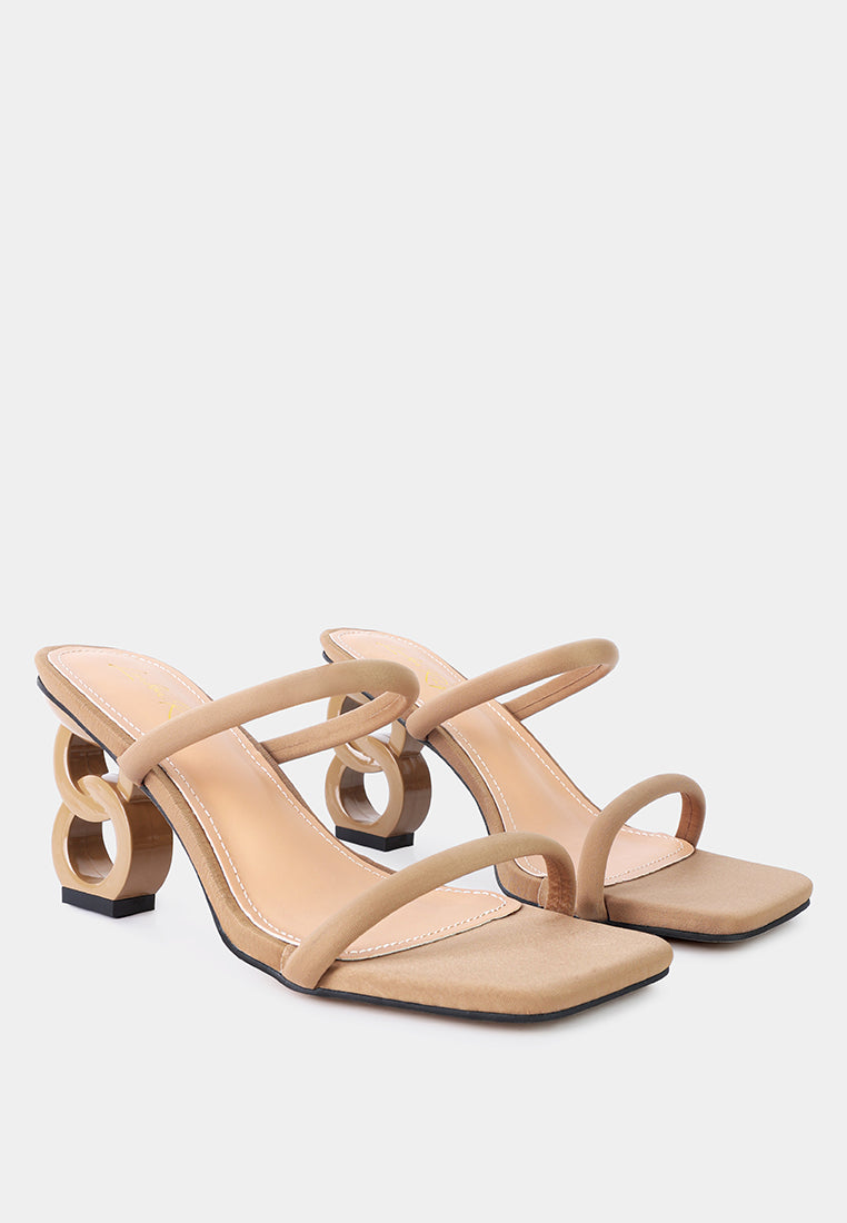 A visual delight and a stylish treat, these statement heel sandals offer both stability and intriguing design elements. The mid-heel slider style is perfect for achieving an effortlessly chic, all-day casual appearance.