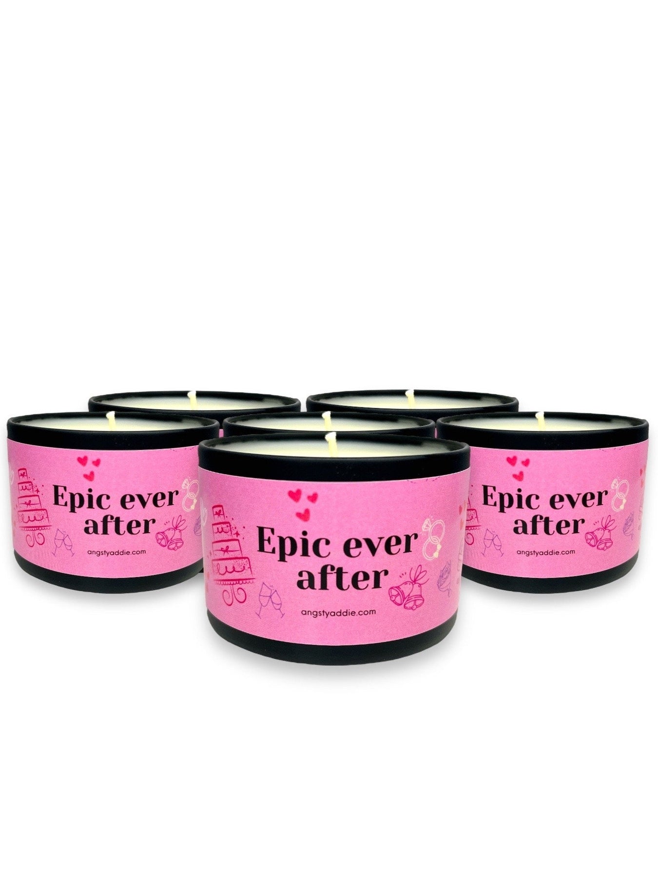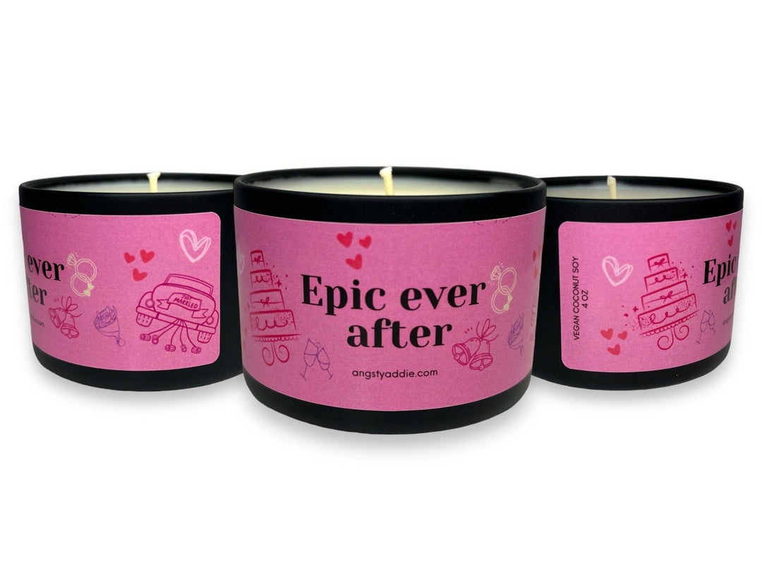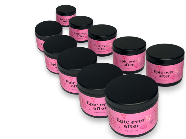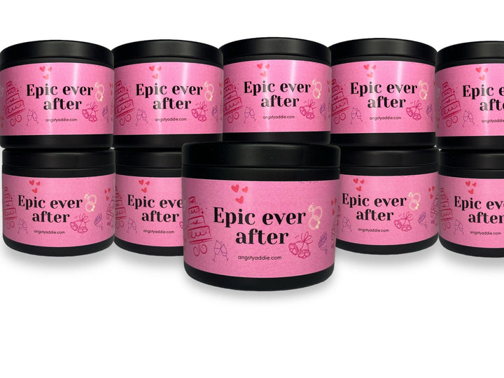 Designed to enchant brides-to-be, our Epic Ever After candle 4 oz. tins make a perfect rehearsal dinner favor, bridal shower favor and more! A nod to the milestone of engagement, a symbol of love, anticipation, and the promise of a lifetime together. Crafted of vegan coconut soy wax, enjoy a clean and eco-conscious burn that fills the air with an irresistible fragrance.