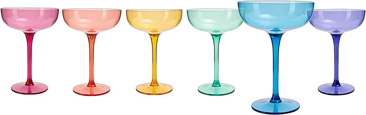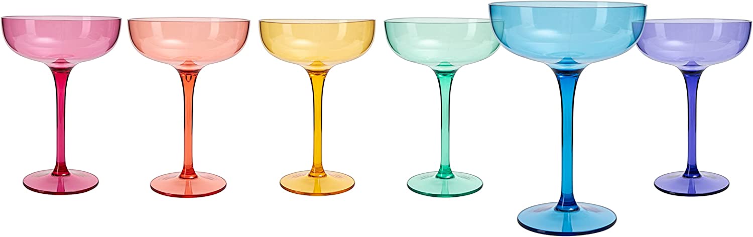 European Style Margarita & Martini Crystal Acrylic Glasses Tritan Drinkware Unbreakable Colored 6 Set - Shatterproof BPA-free Plastic , Reusable, Large 15oz , Indoor & Outdoor, Multiuse Or Disposable by The Wine Savant