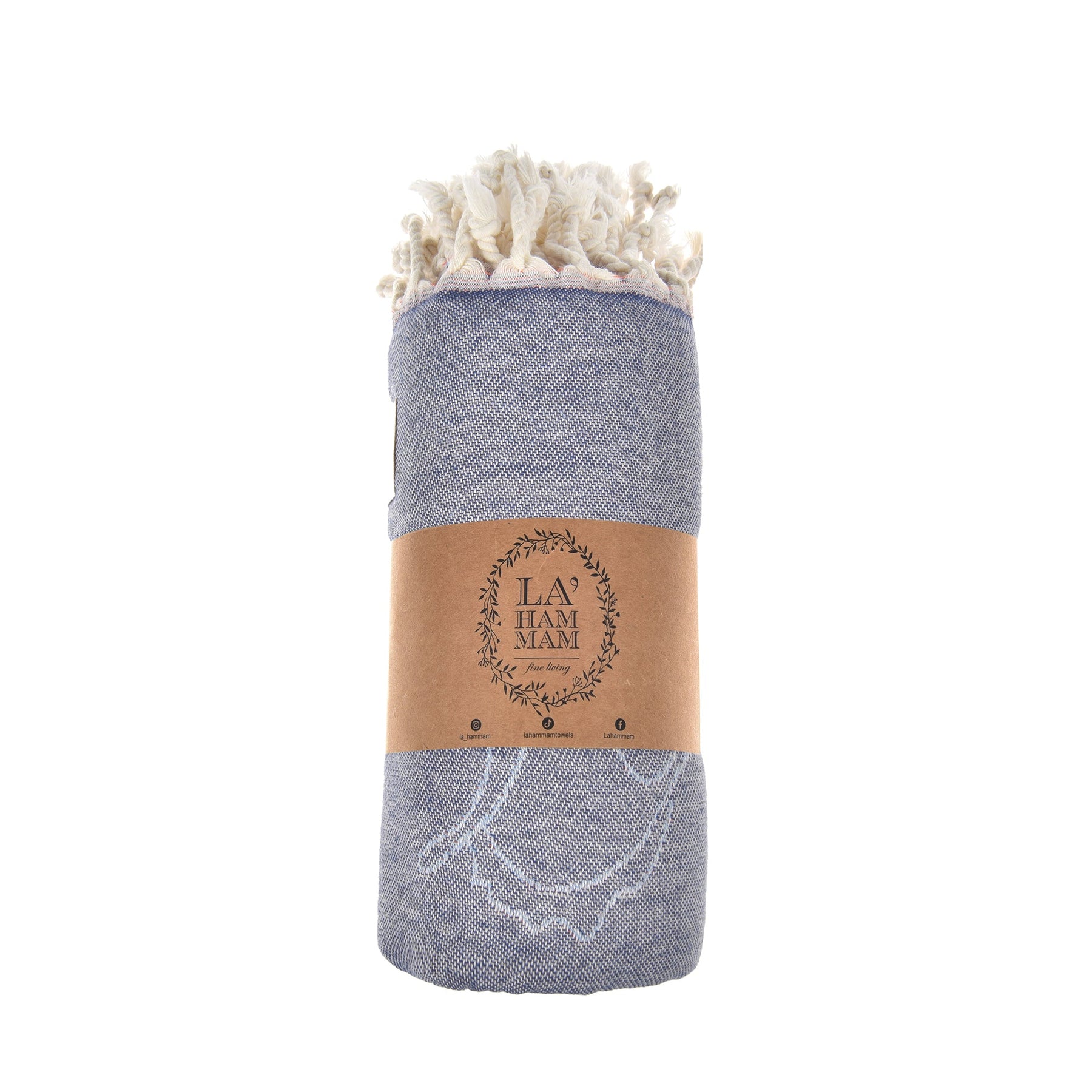 Exclusive Deep Blue Peshtemal Pure Cotton Beach Towel by La'Hammam