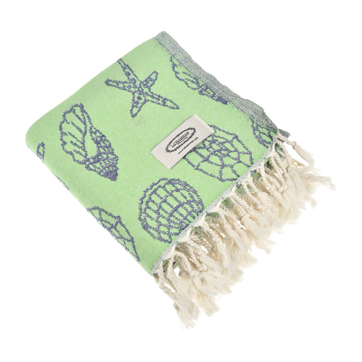 Exclusive Seashells and Stars Peshtemal Pure Cotton Beach Towel by La'Hammam