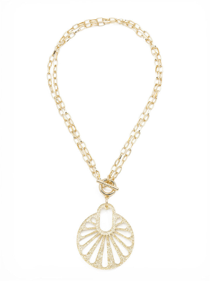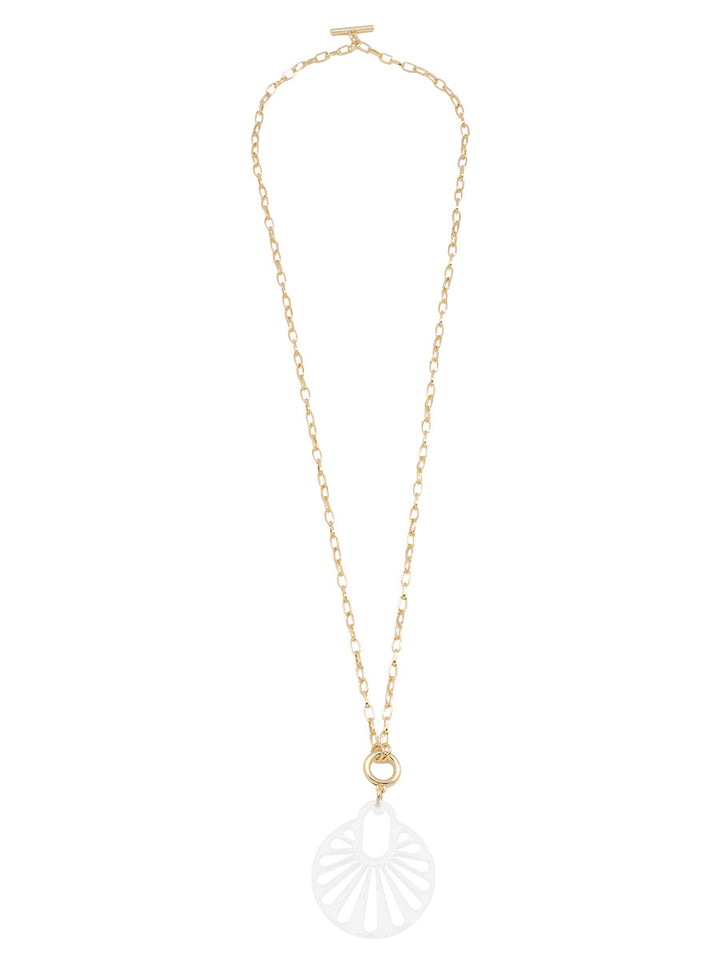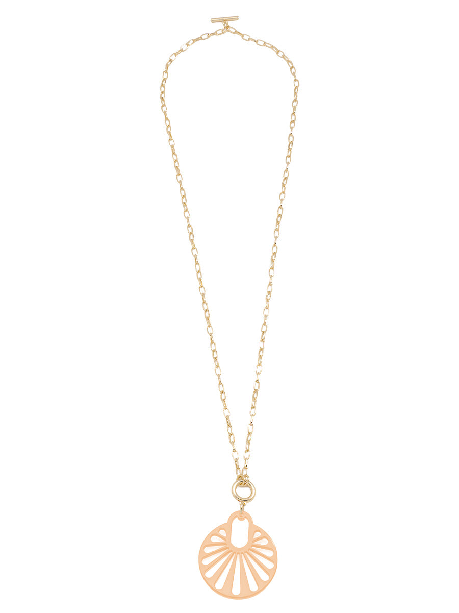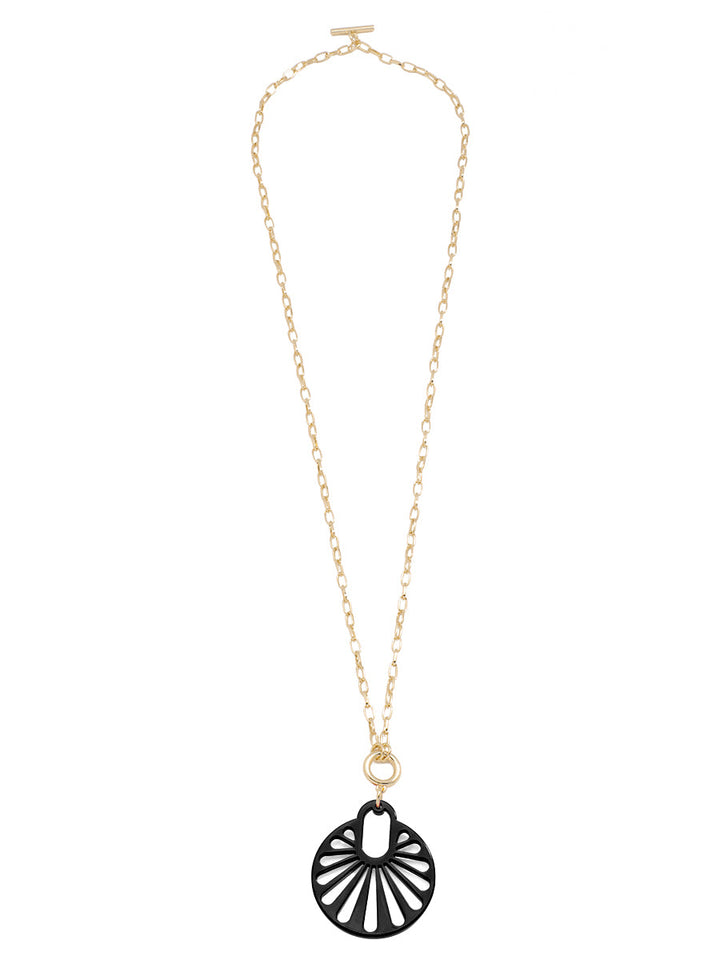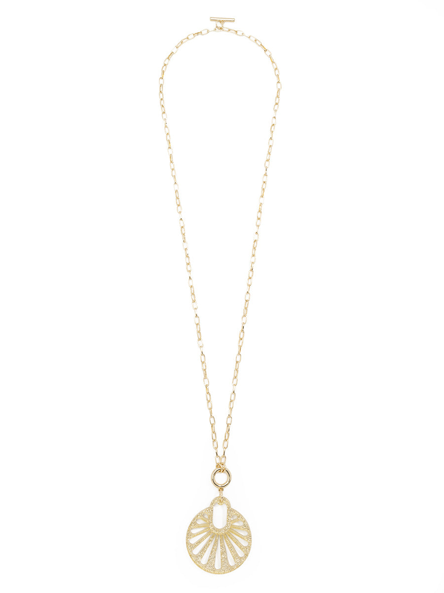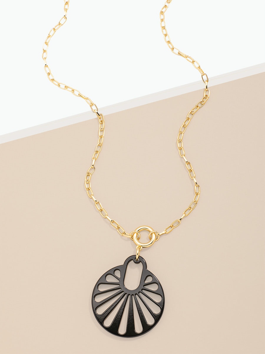A light, airy pendant necklace featuring an artful cutout design is all you need to feel pretty and stylish.