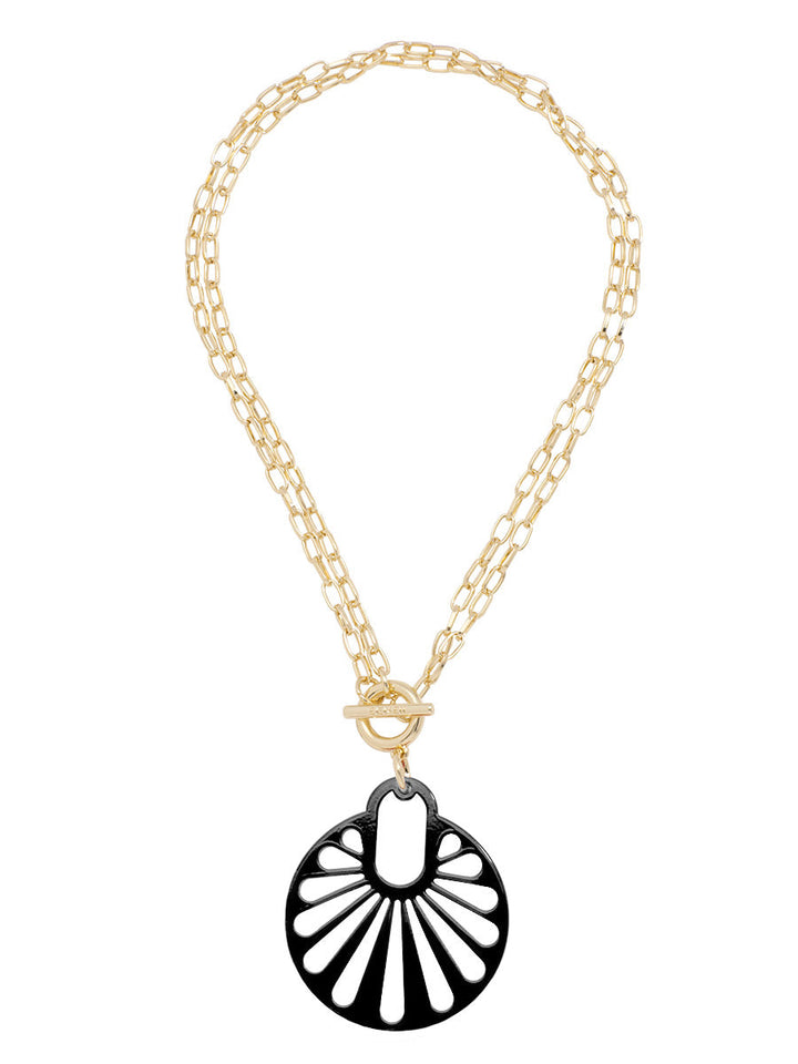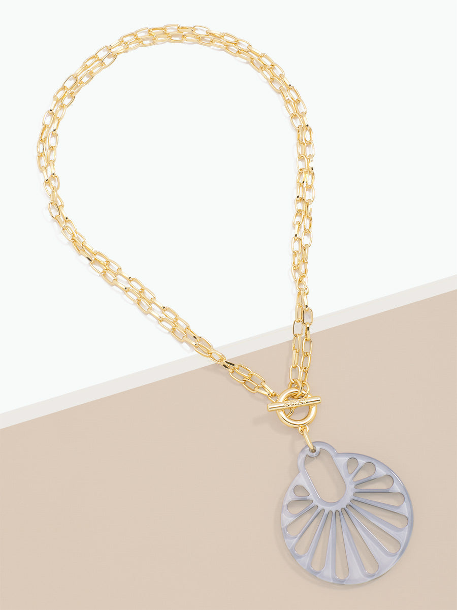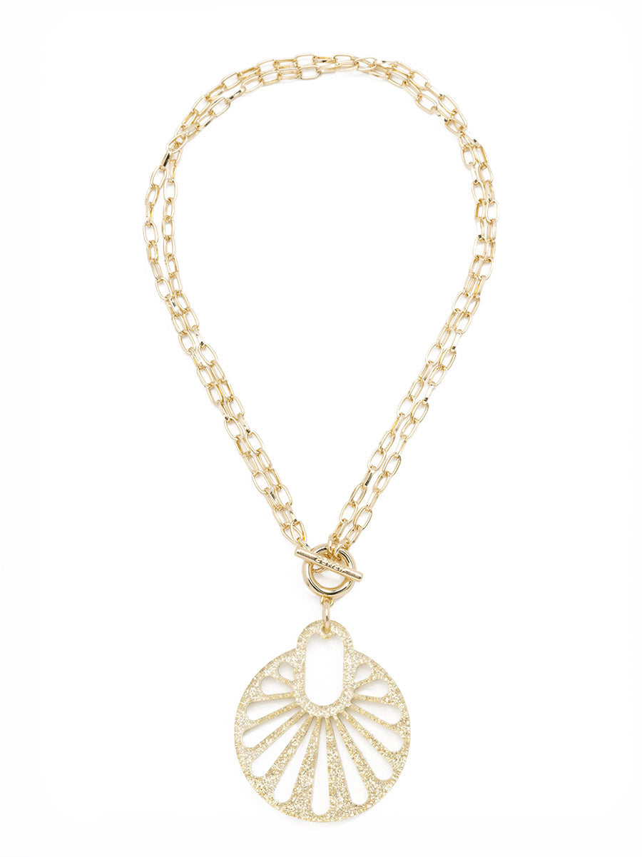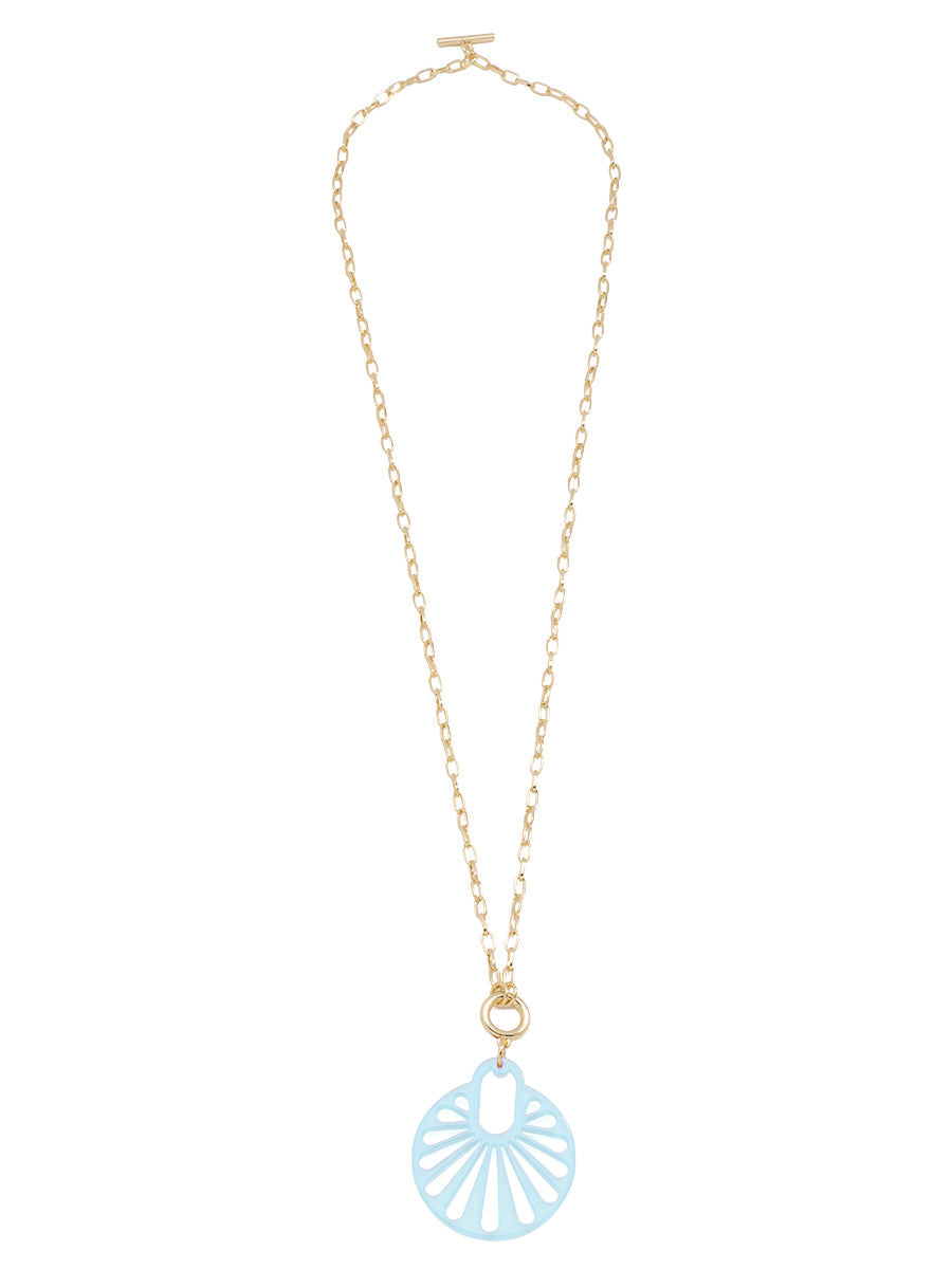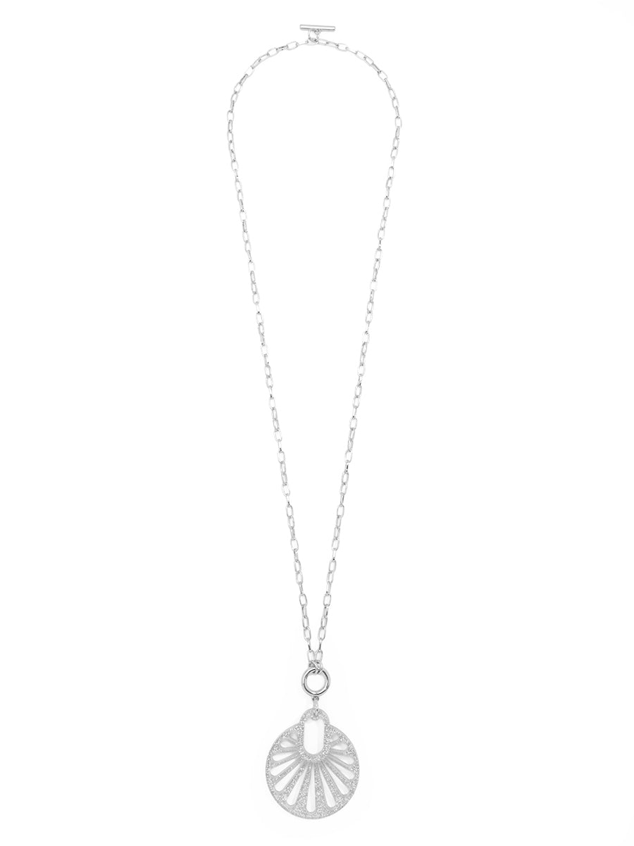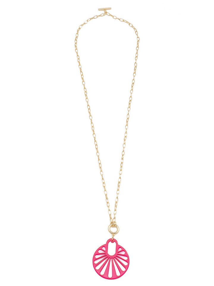 A light, airy pendant necklace featuring an artful cutout design is all you need to feel pretty and stylish.