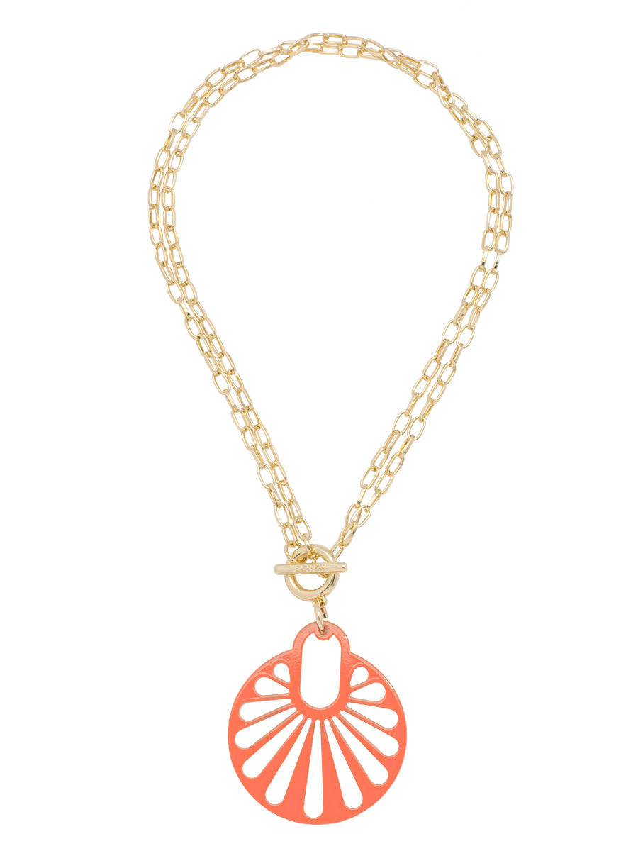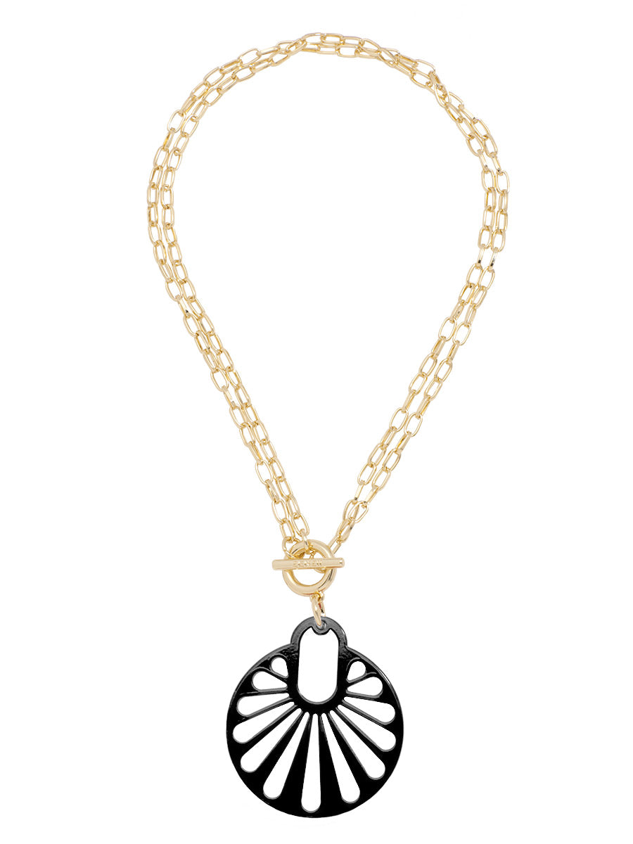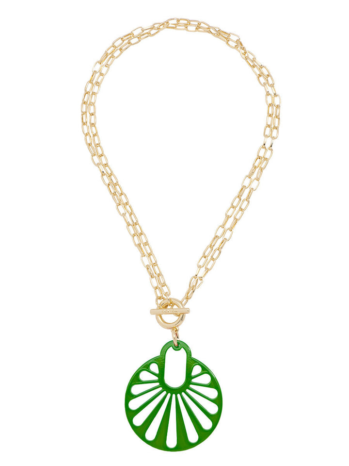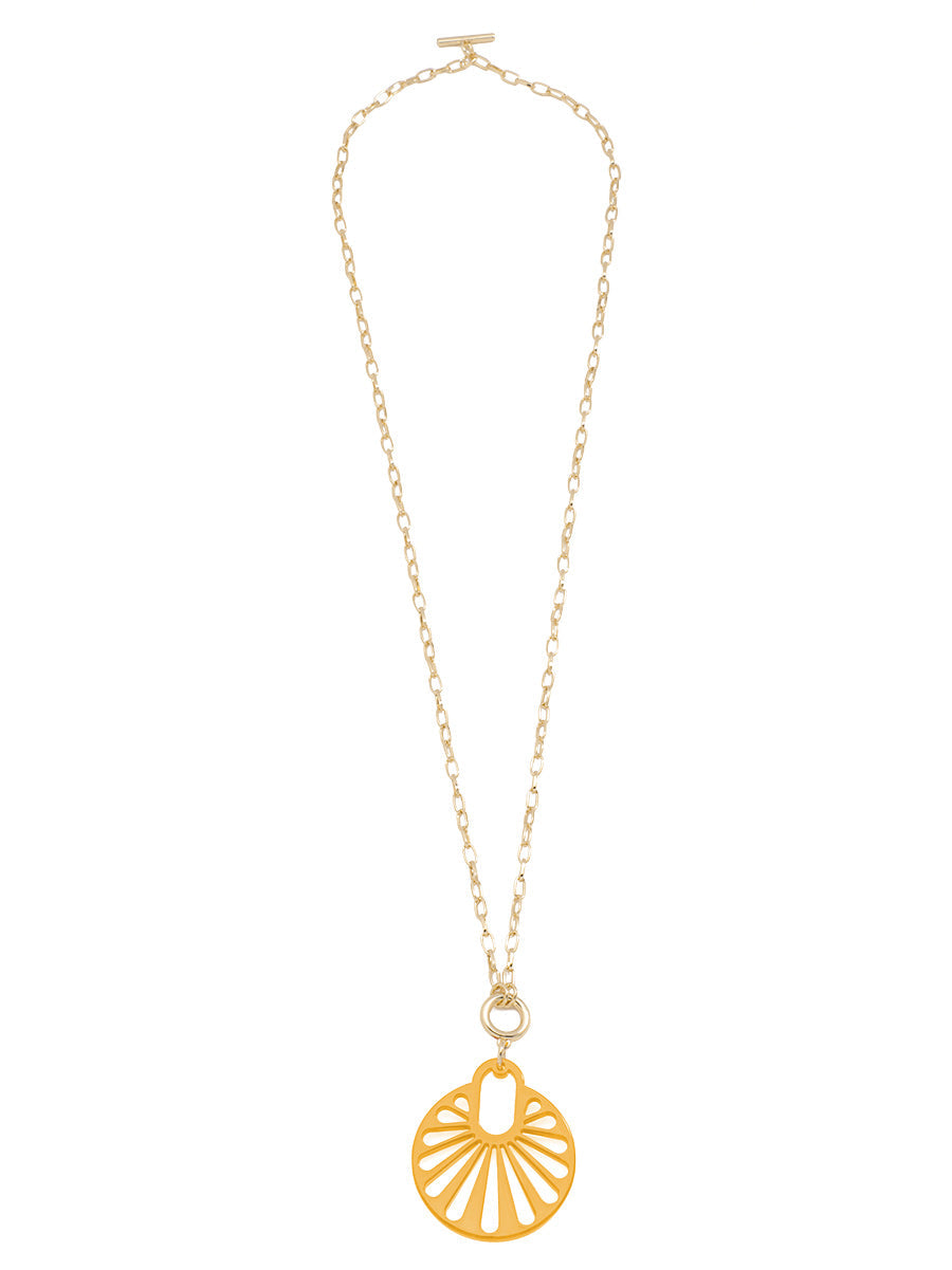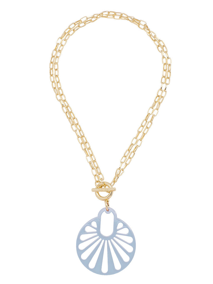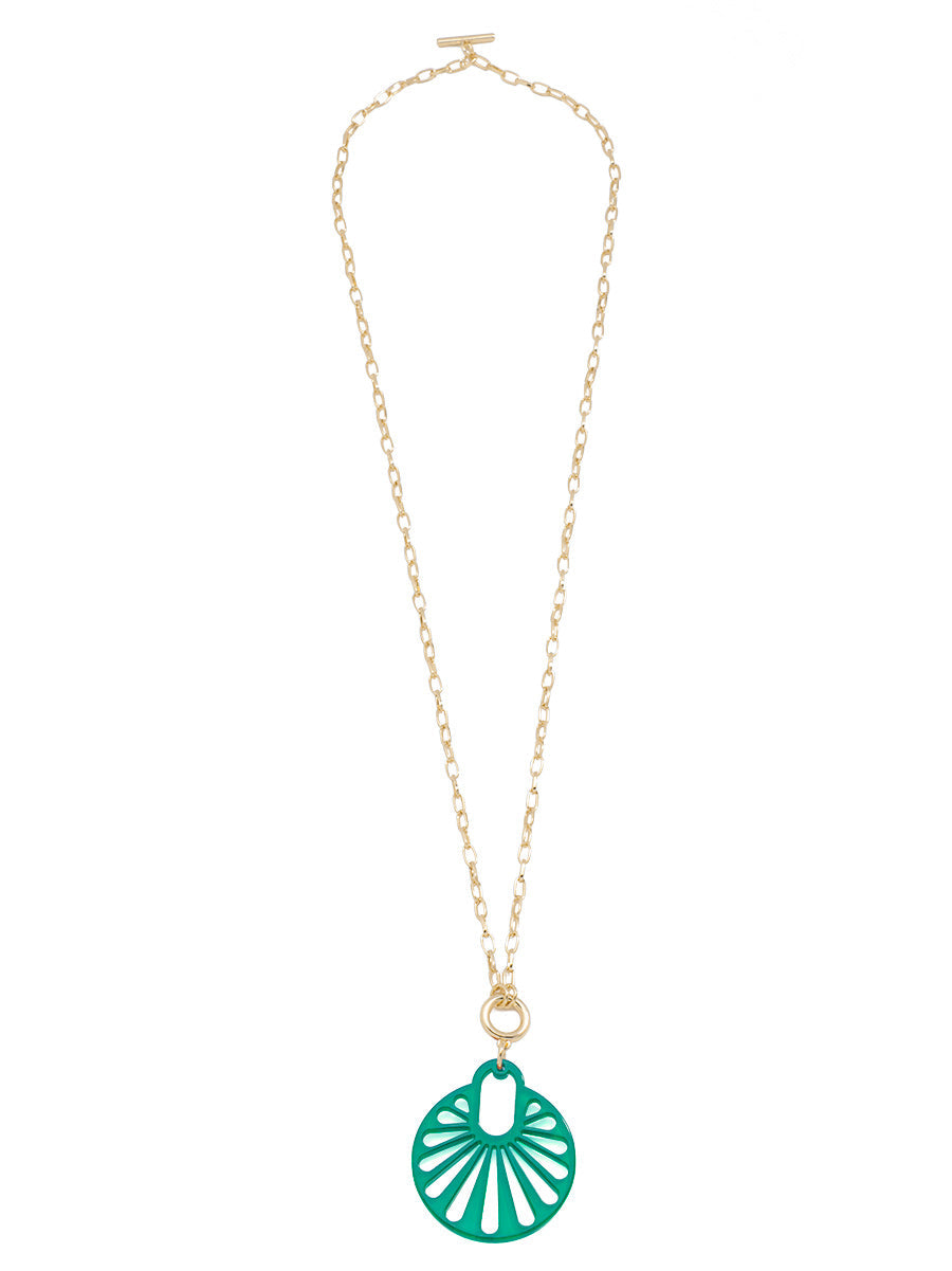 A light, airy pendant necklace featuring an artful cutout design is all you need to feel pretty and stylish.