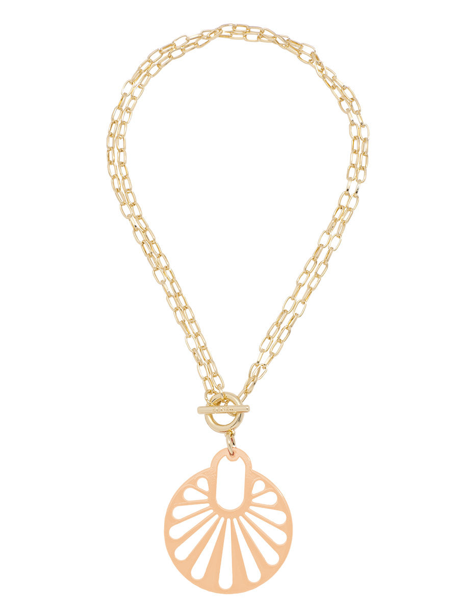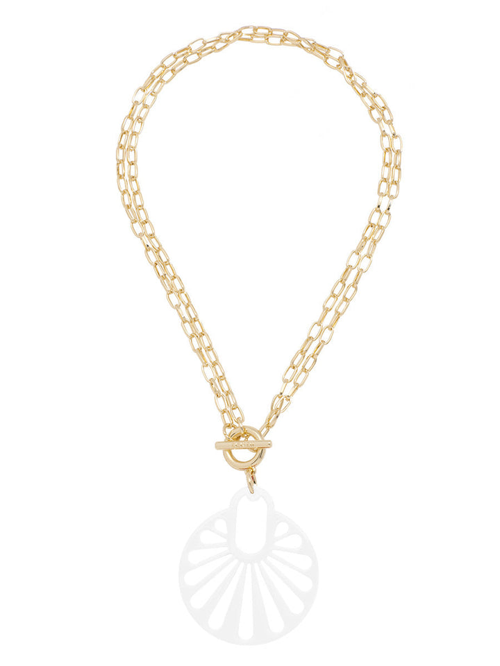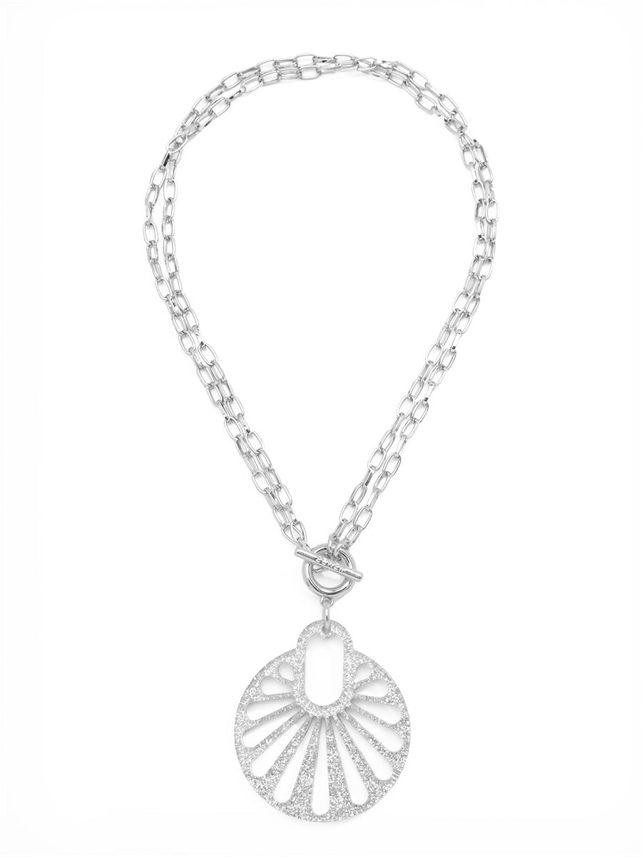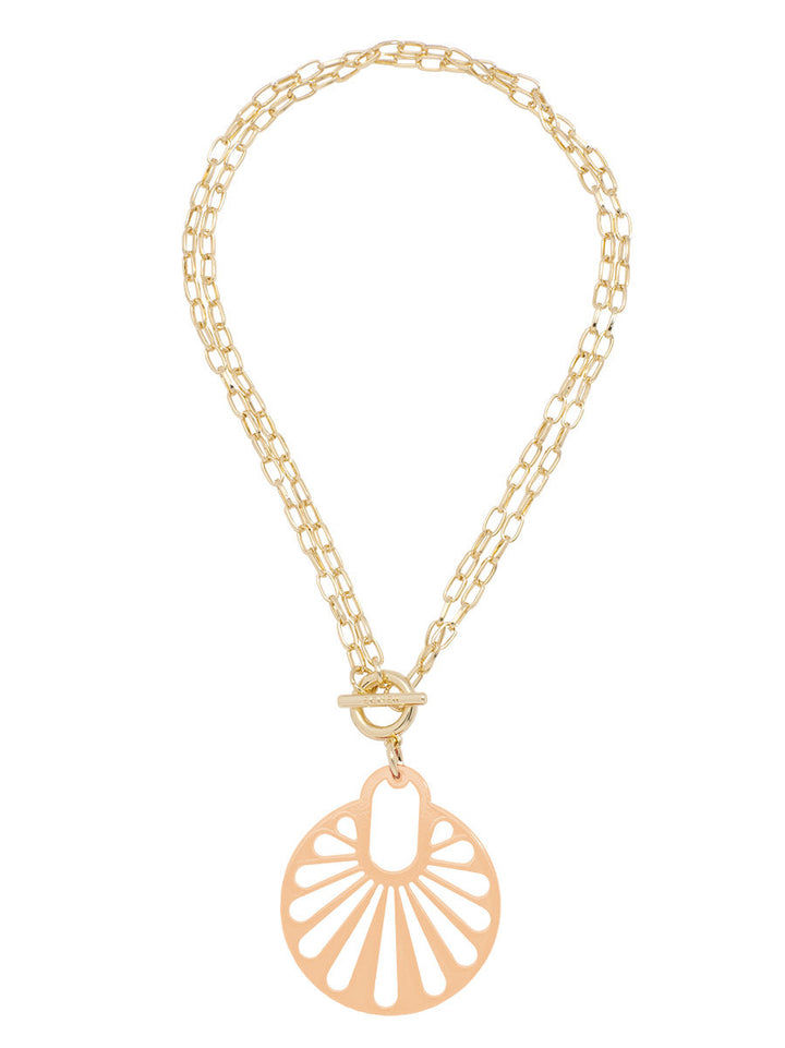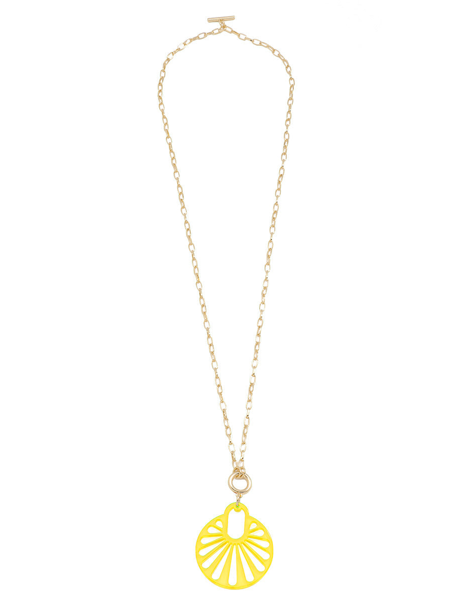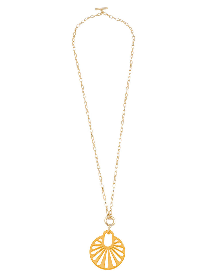 A light, airy pendant necklace featuring an artful cutout design is all you need to feel pretty and stylish.