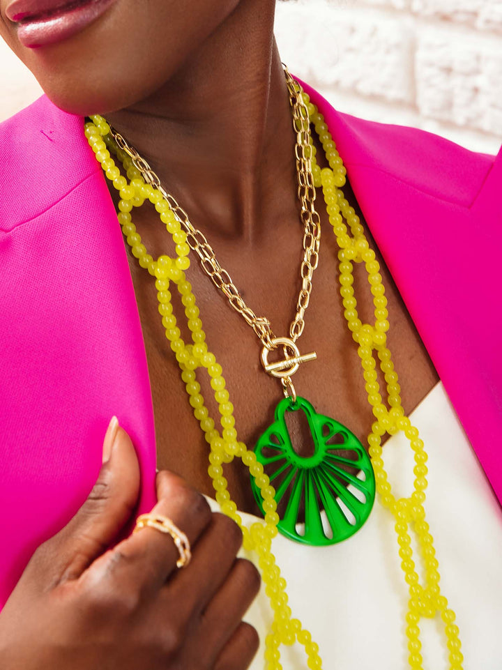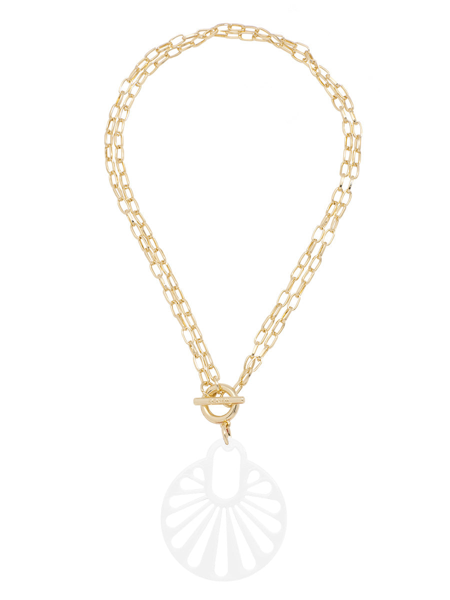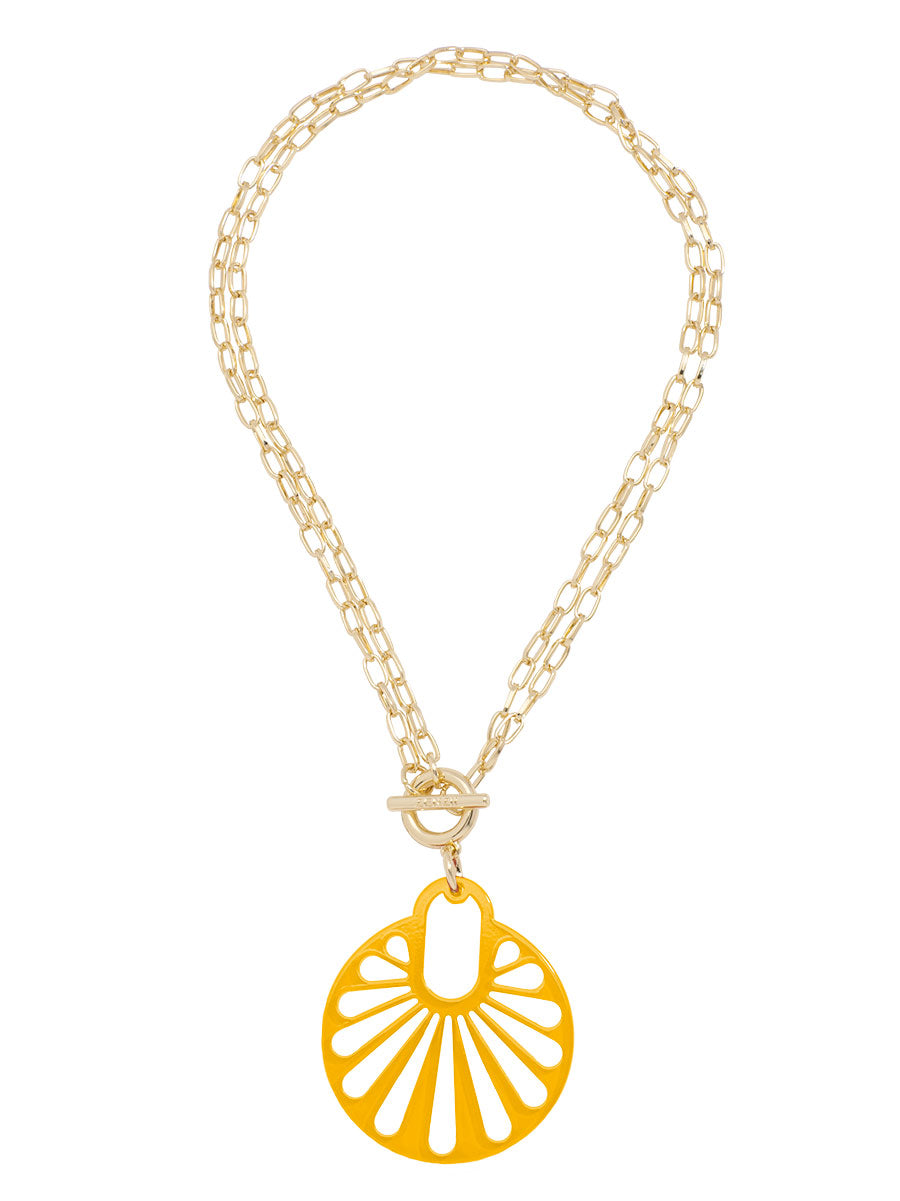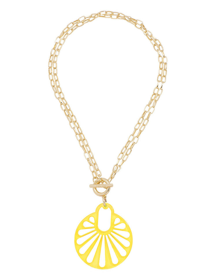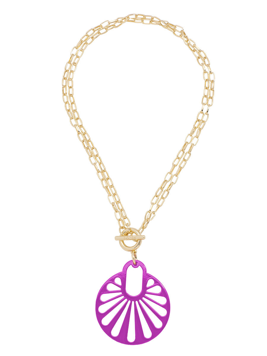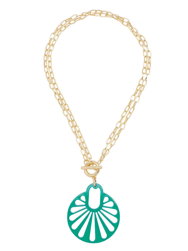 A light, airy pendant necklace featuring an artful cutout design is all you need to feel pretty and stylish.