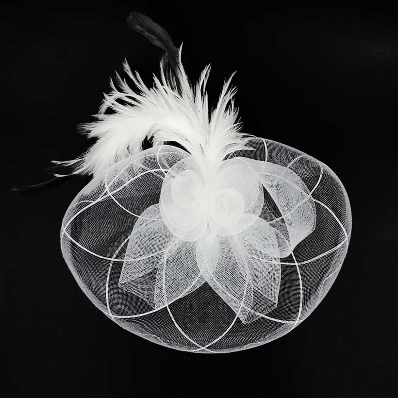 • Feather Pearl Cluster Mesh Flower Fascinator Headband