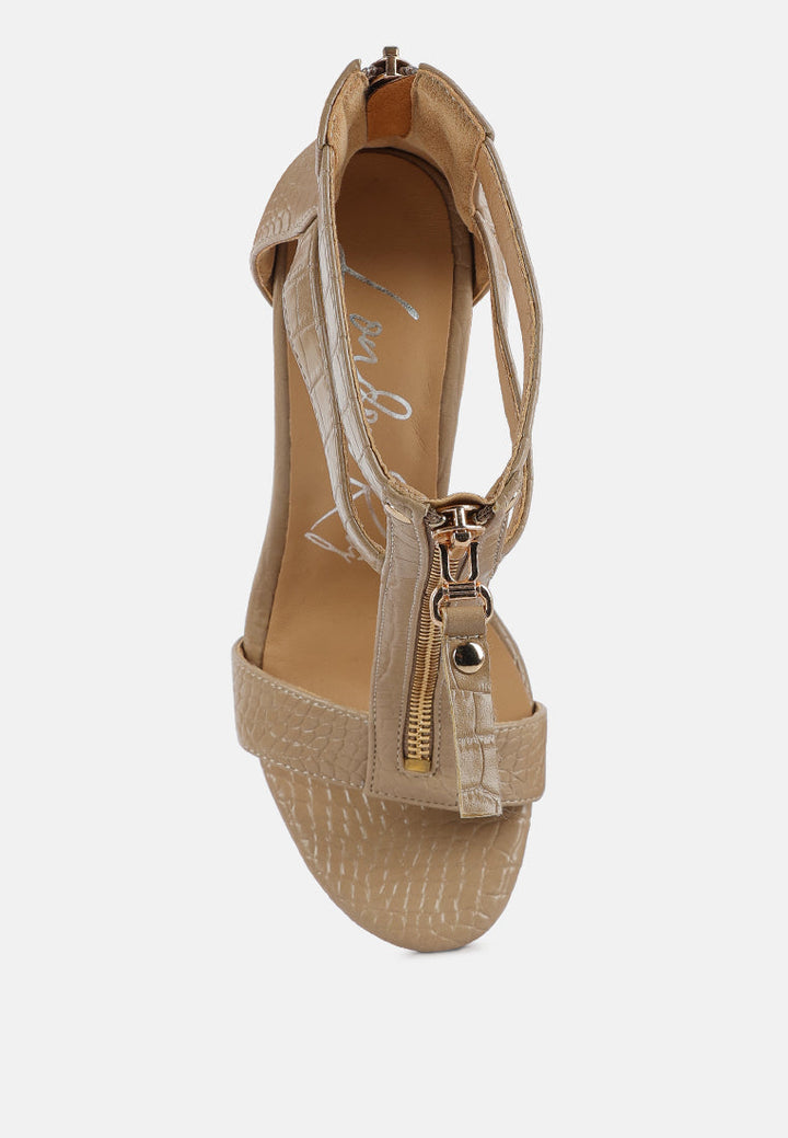 Make a statement with these high block heels, featuring a unique front zipper detail matched with a functional back zipper closure. Truly one of a kind of heels, which can be worn to elevate your outfits. Idea for special occasions or weekend parties with your favourite outfits!