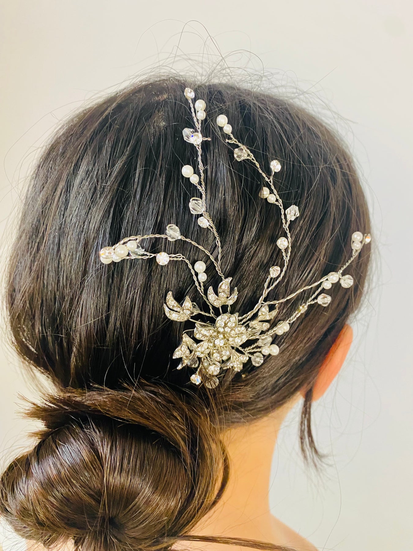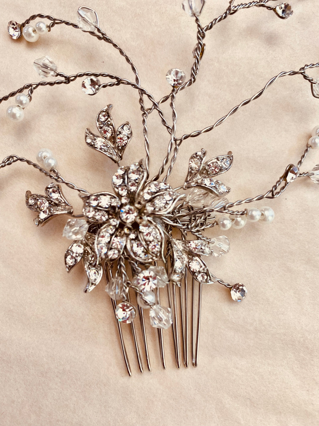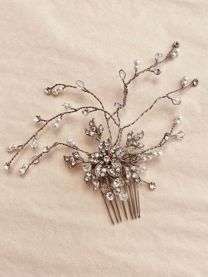 Affix this mystical floral comb into any hairstyle.  It's the perfect touch to a low chignon, or to finish side swept hair.