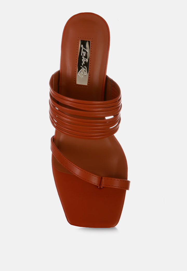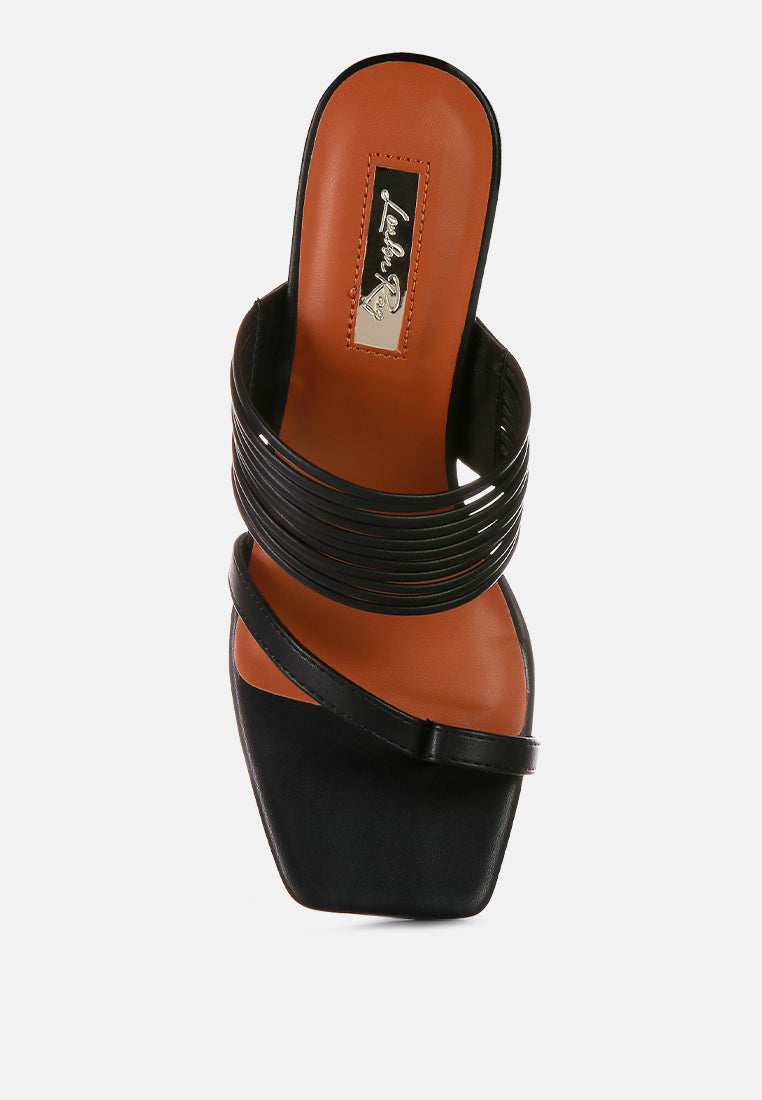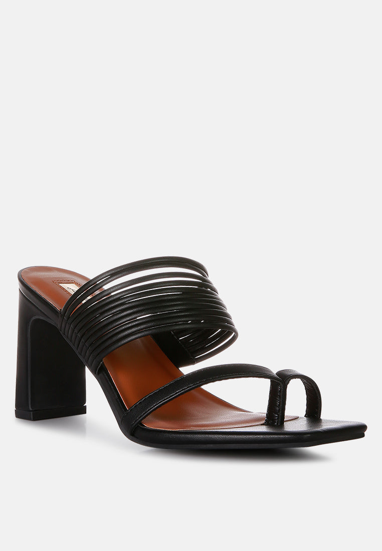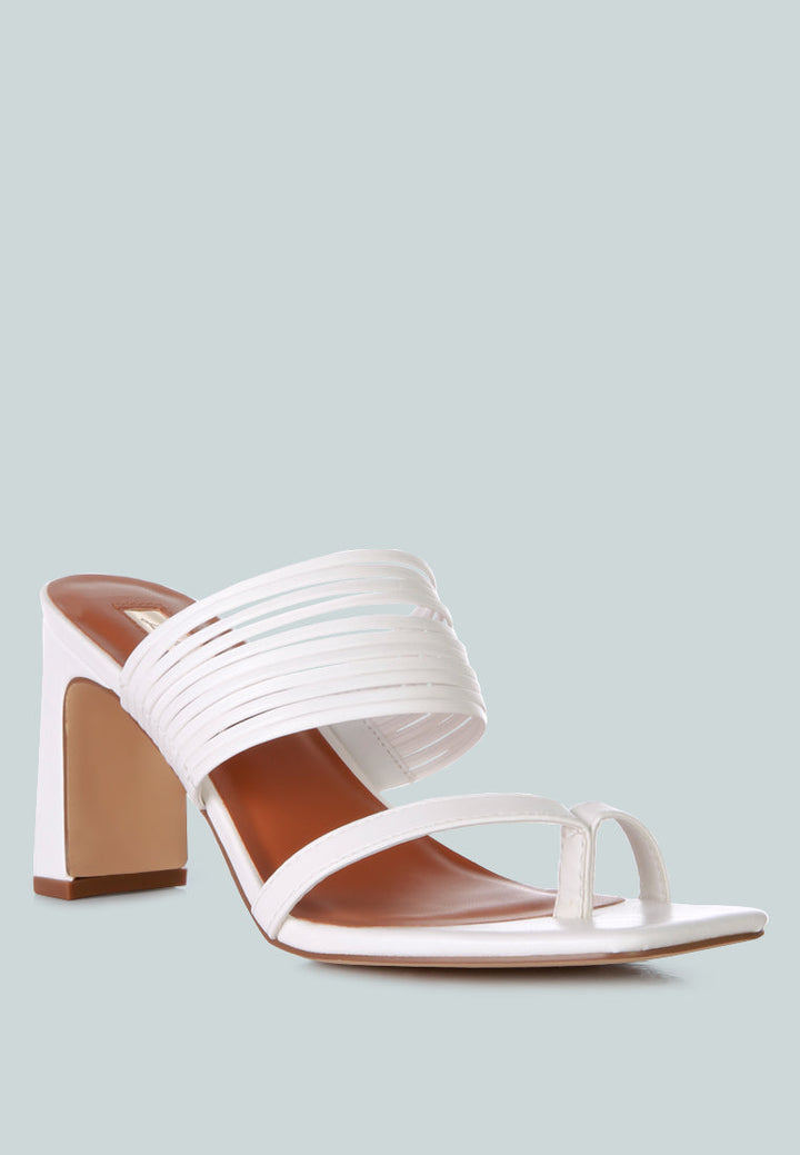 With bangle strap detailing and light cushioning for comfort, these mid-heel block sandals are here to make a statement wherever you walk! The sandals have a toe ring detail and thin faux leather straps making them look extra gorgeous on your feet.