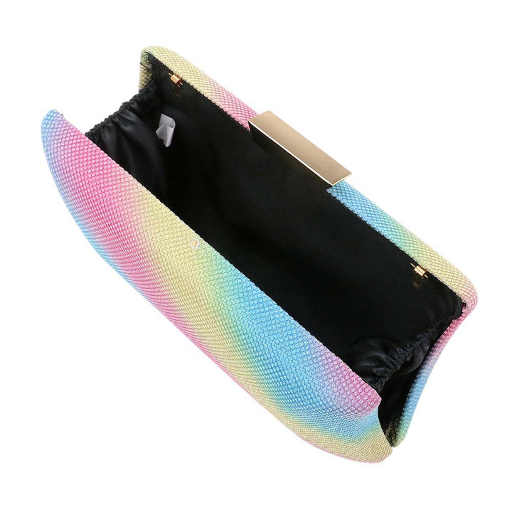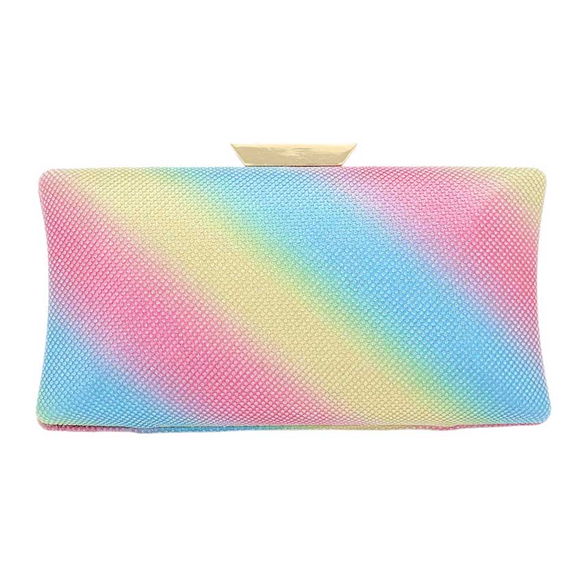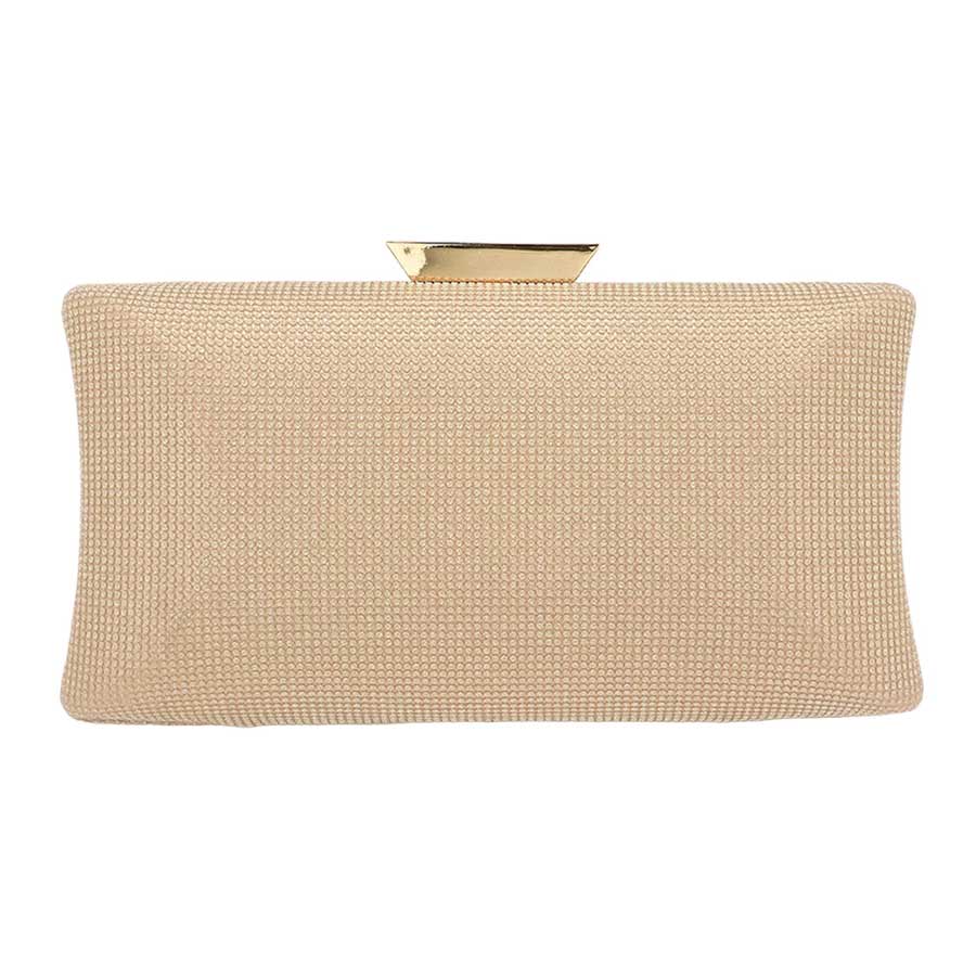 Glittered Rectangle Evening Clutch Crossbody Bag, adds a touch of glamour to any evening look. Crafted from fine glittered material, this clutch features a distinctive rectangle shape, providing ample storage space for your everyday essentials. The adjustable shoulder strap allows you to effortlessly switch between a clutch and a crossbody bag. Make your look a little gorgeous with this bag.
