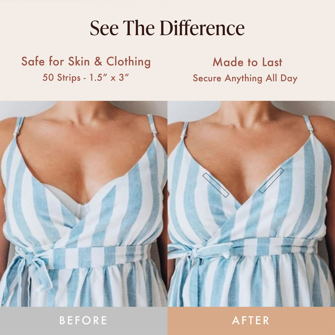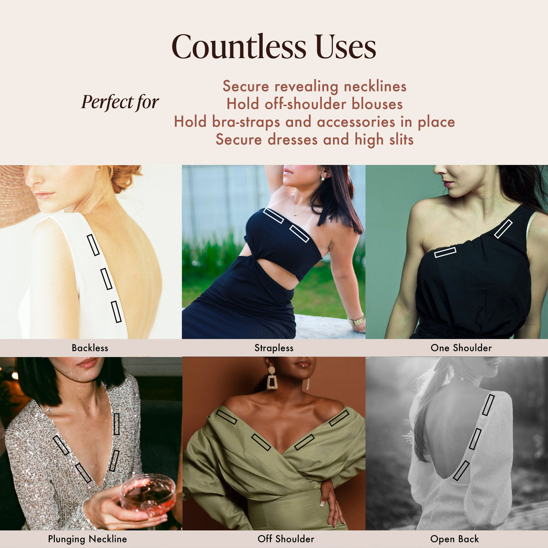 • Versatility Unmatched: Perfect for every piece of clothing, from off-shoulder tops and wrap dresses to blouses that tend to gape. Our 1.5" x 3" strips have got you covered.