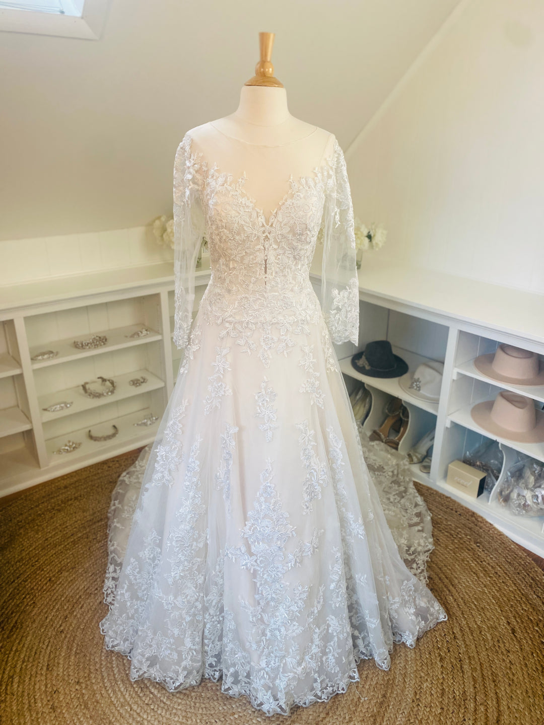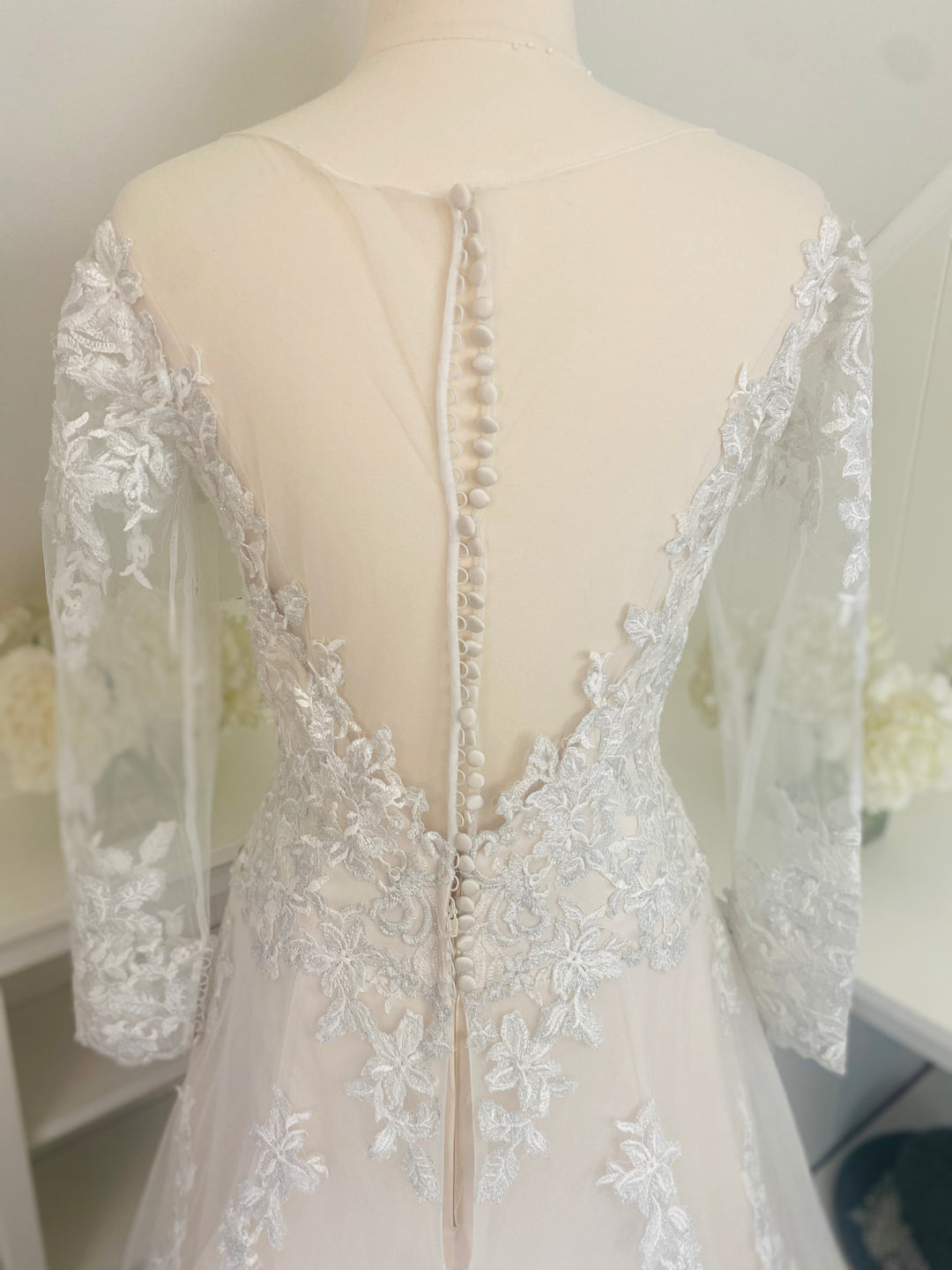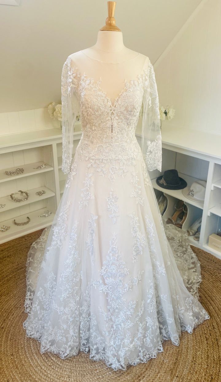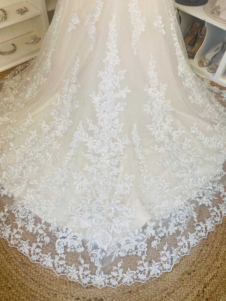 Sale wedding dresses, bridal party dresses and bridal accessories come to us directly from small independent retailers and brands and are mostly discontinued samples.  This merchandise has never been previously purchased or altered, and while most of these goods are in immaculate condition normal wear and tear can occur during previous try on.  Any defects outside of normal wear are disclosed in each listing.