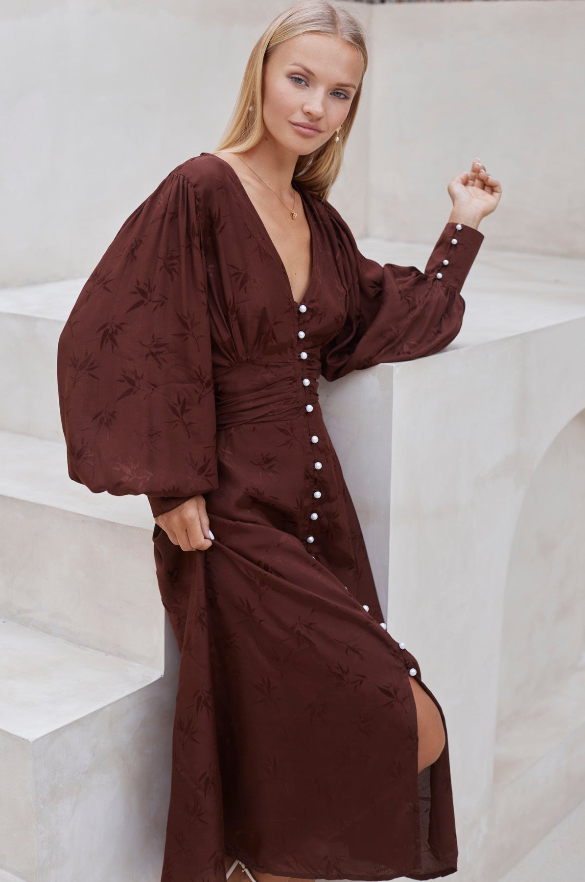Juliette Pearl Buttons Midi Dress by ELF