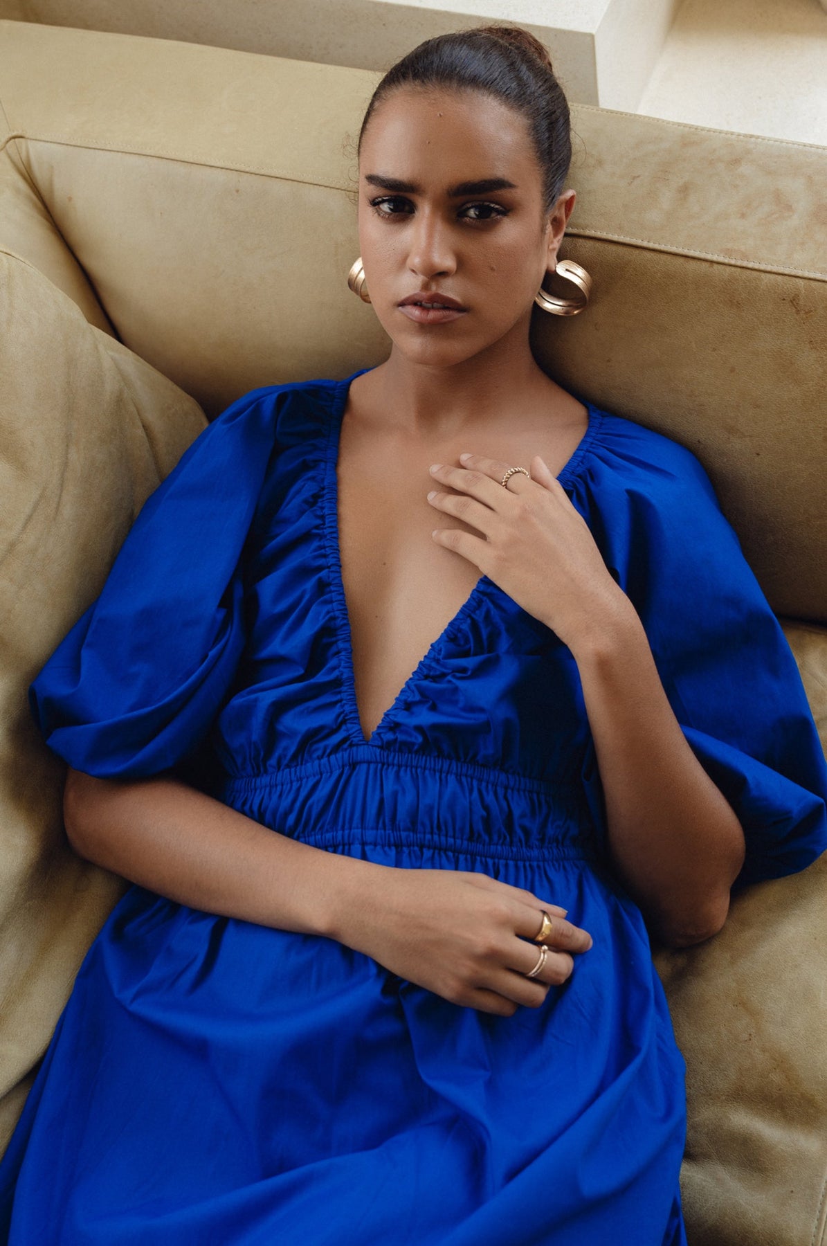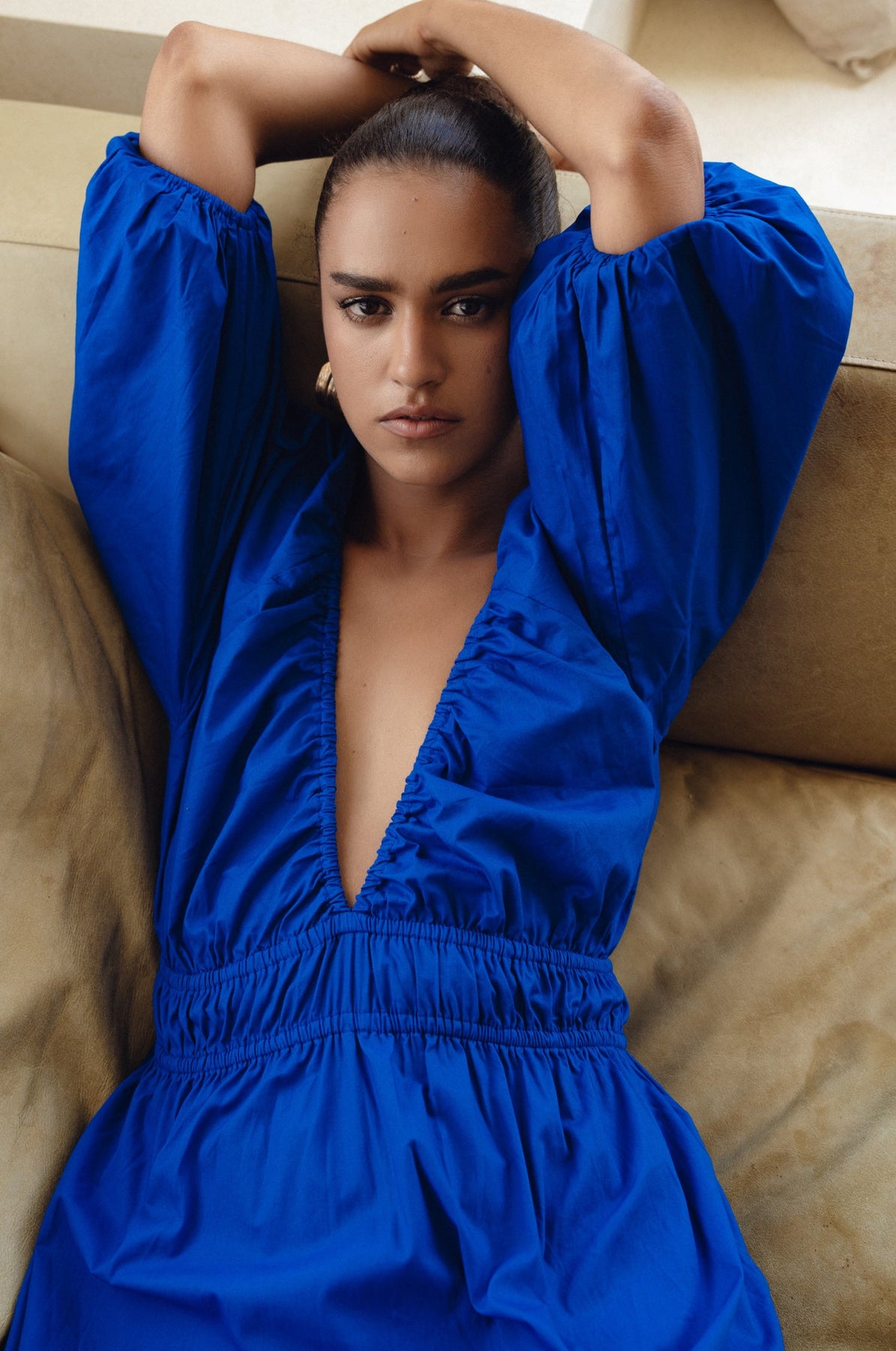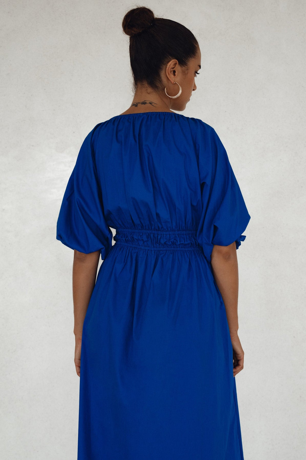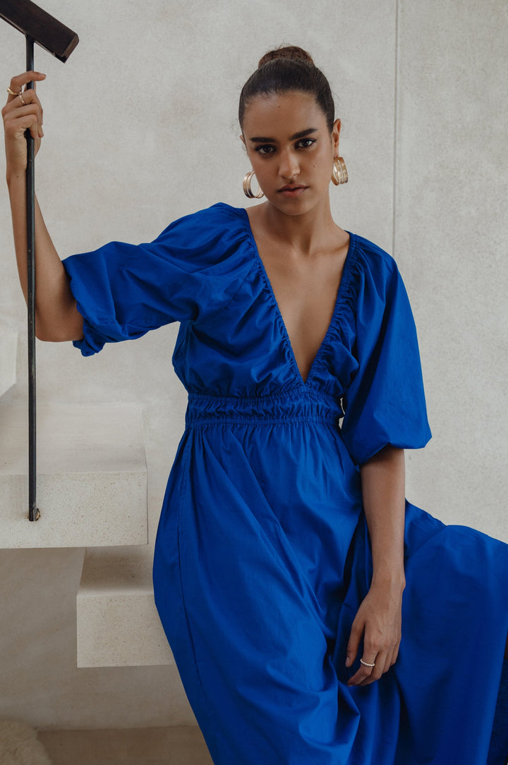 Handcrafted from soft and breathable cotton our Kezas maxi dress is detailed with elasticated V-neckline, shirred waist and voluminous sleeves for a romantic look. Handmade into a maxi silhouette it moves effortlessly with every step.