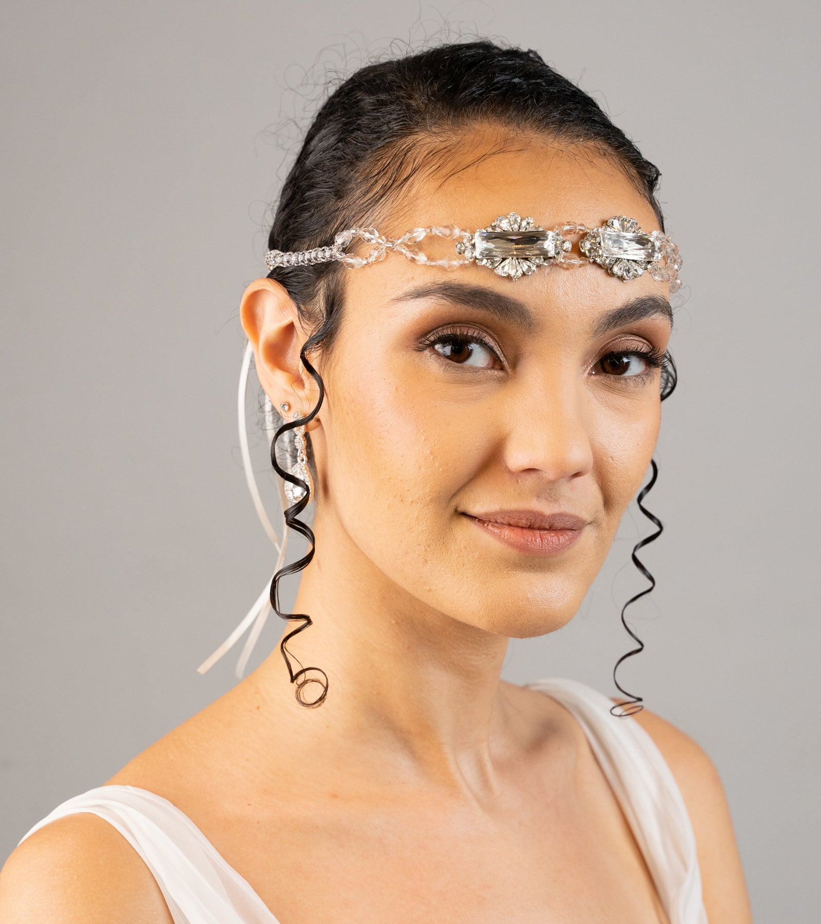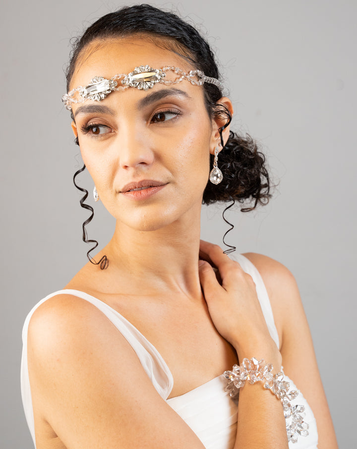Truly shine in this blinged out headband.  It can be worn a number of different ways.