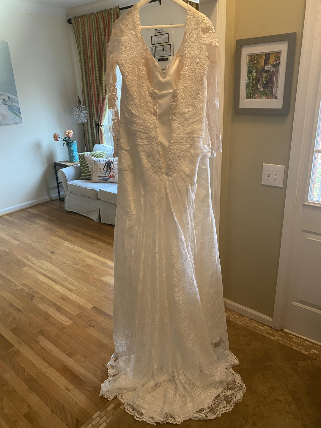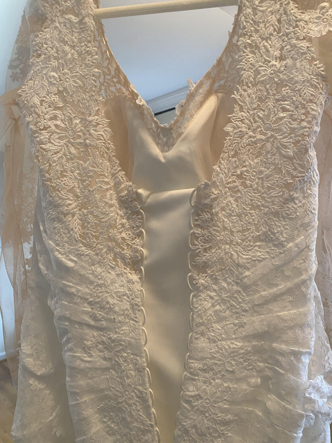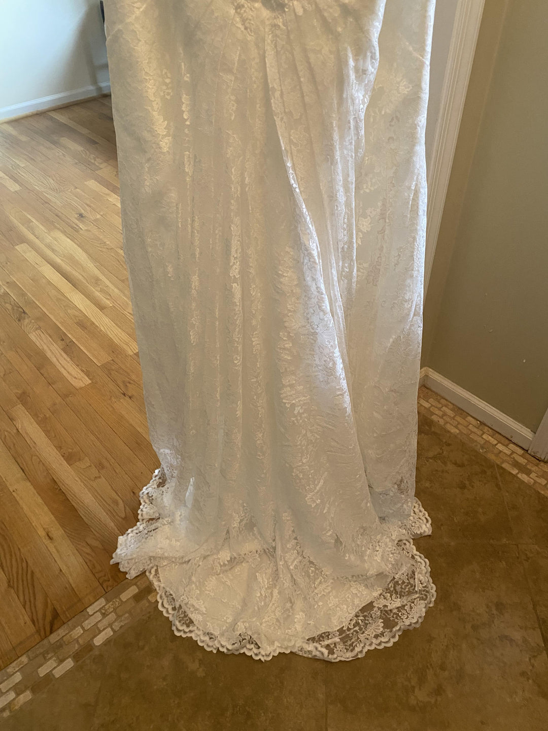 Sale wedding dresses, bridal party dresses and bridal accessories come to us directly from small independent retailers and brands and are mostly discontinued samples.  This merchandise has never been previously purchased or altered, and while most of these goods are in immaculate condition normal wear and tear can occur during previous try on.  Any defects outside of normal wear are disclosed in each listing.