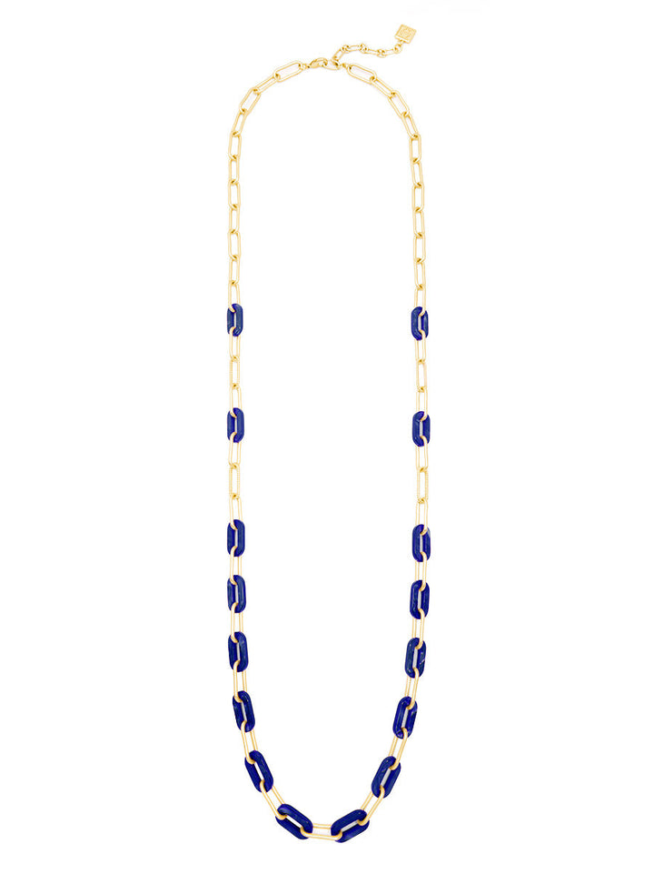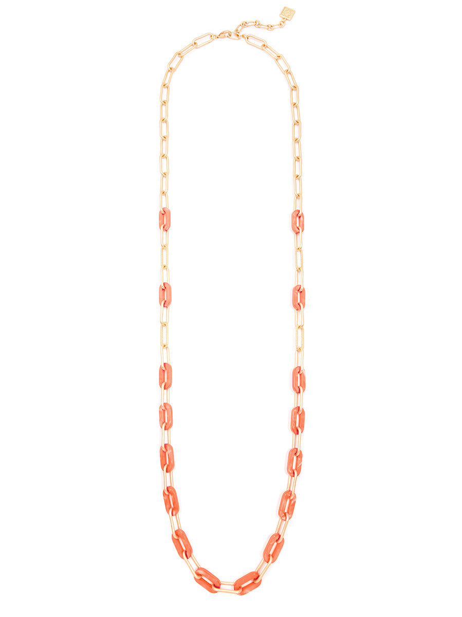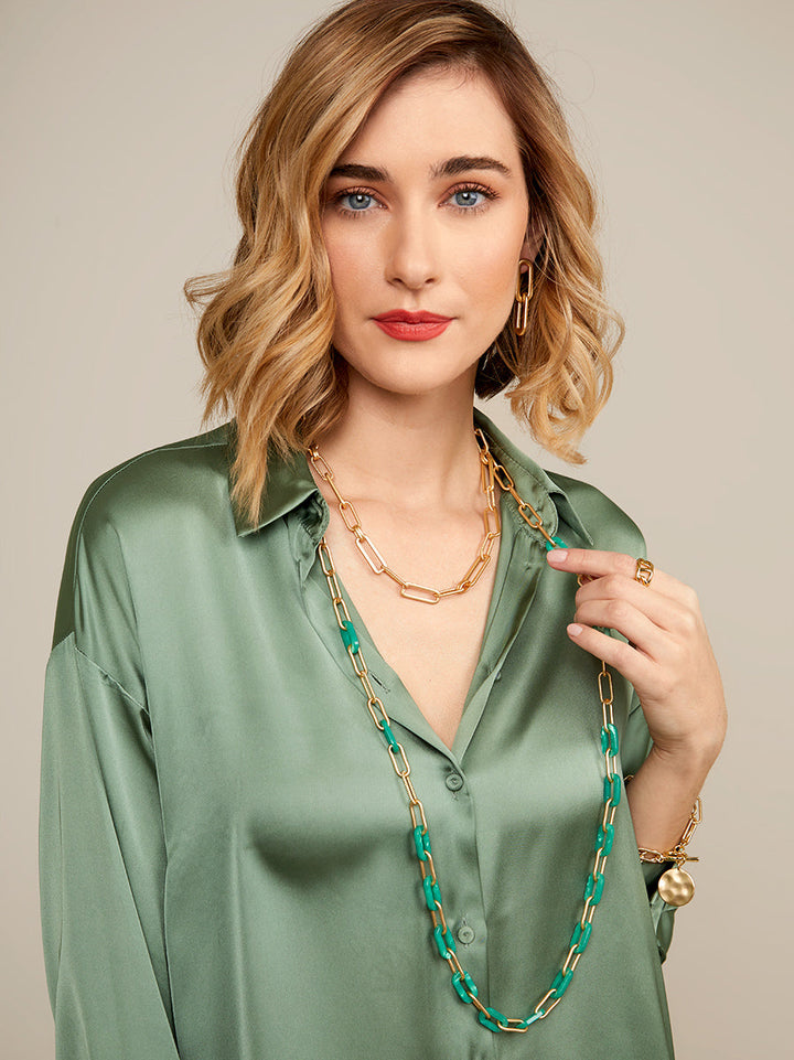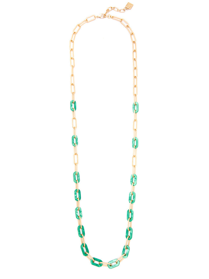 Why should you have to choose between showcasing your love of color and your love of links? You don't any more! This mixed media necklace features marbled resin and 18K gold-plated paperclip links and is finished with a lobster claw closure. Pair with other matte or shiny link necklaces for a flawless layered look.
