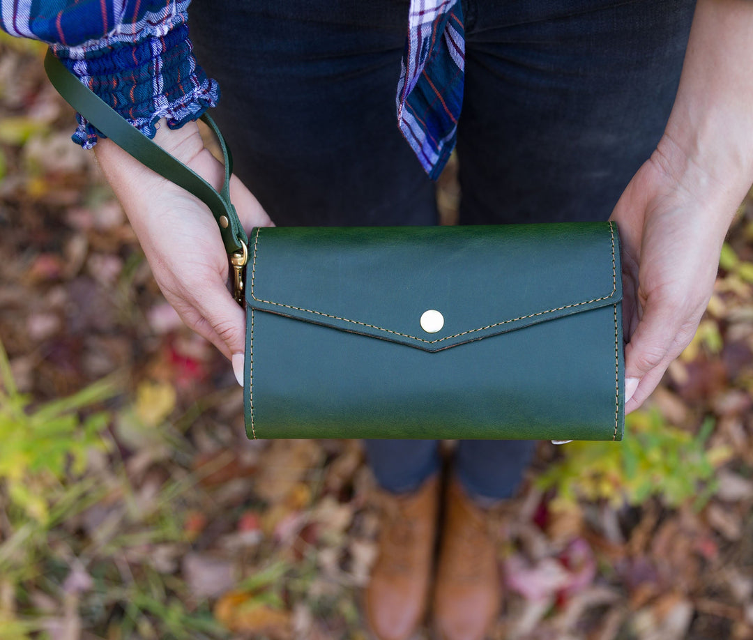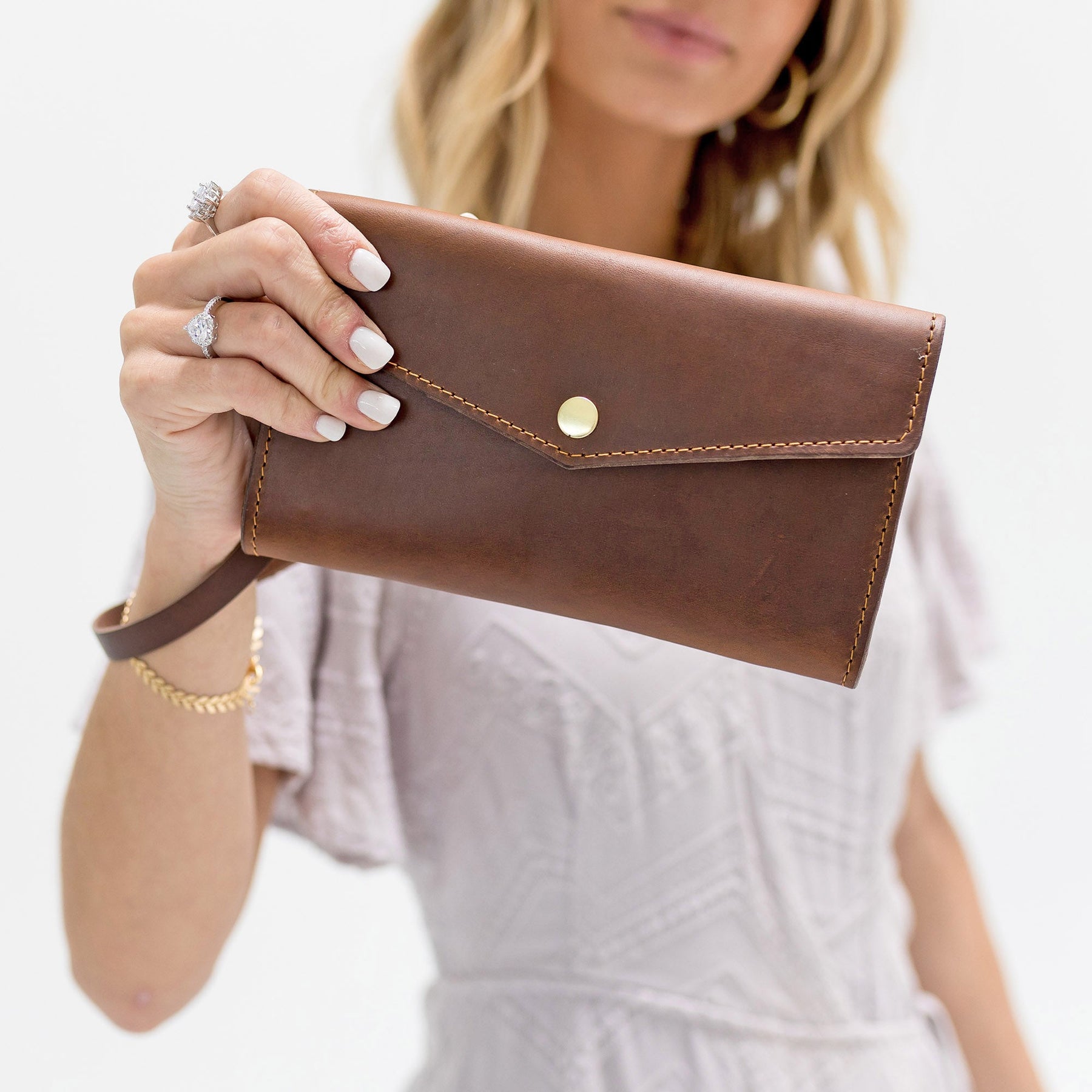 A minimalist women's leather clutch wallet, meticulously handcrafted from the best authentic american leather. We've designed this wallet be an everyday clutch with keen attention to detail and plenty of storage room to house your phone, cash, coins, and plenty of cards. Each wallet has waxed and burnished edges for a premium, long lasting finish. It's a a perfect addition to our Leather Totes!