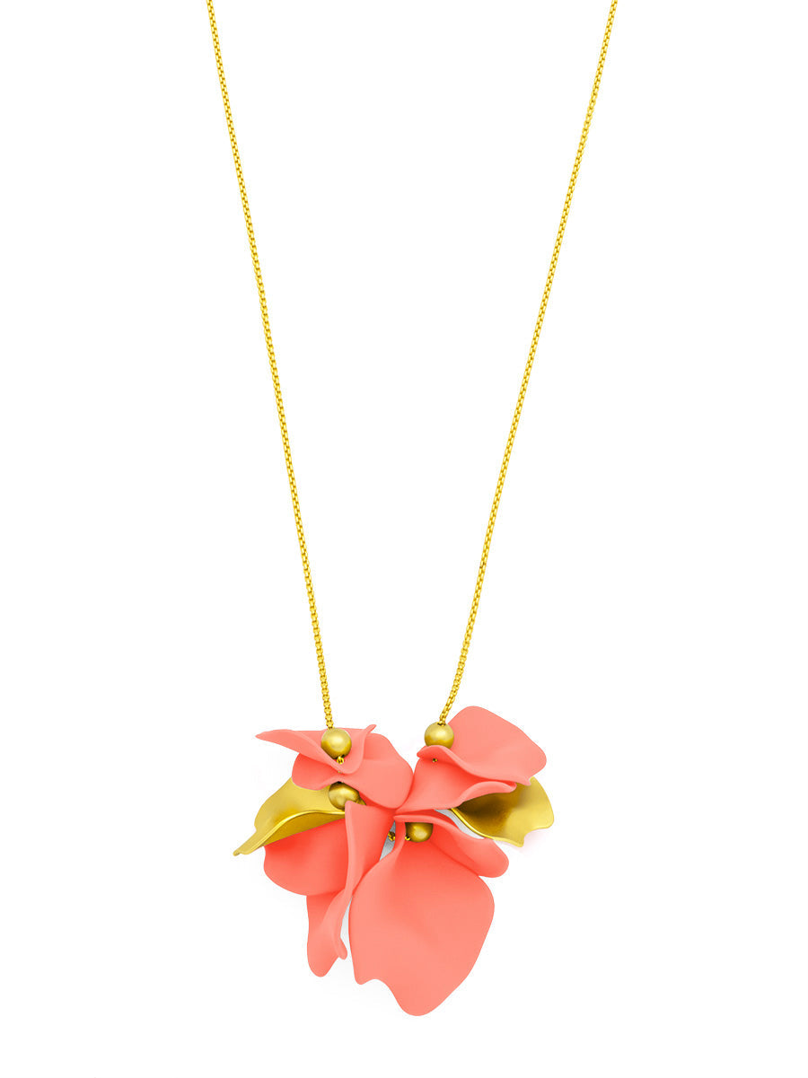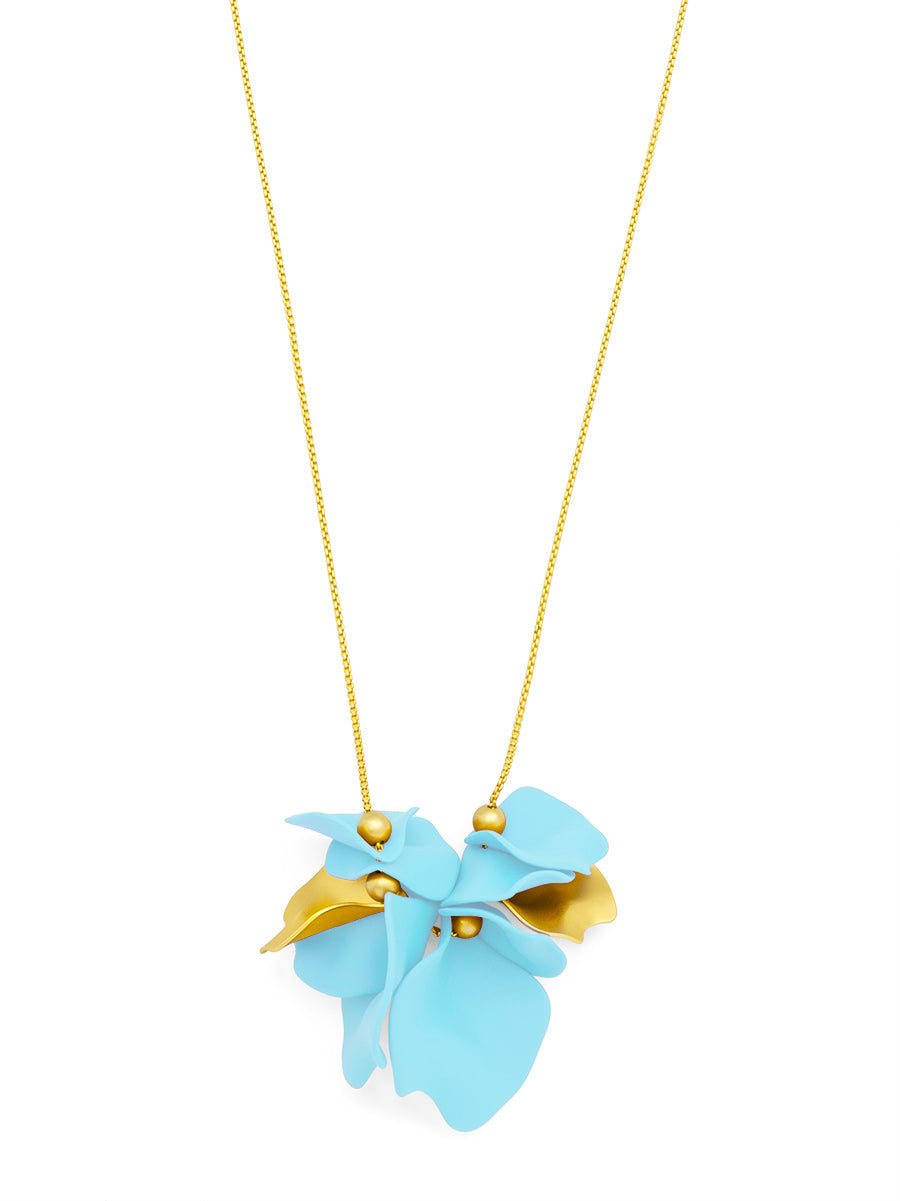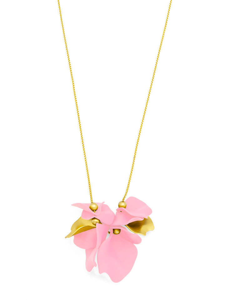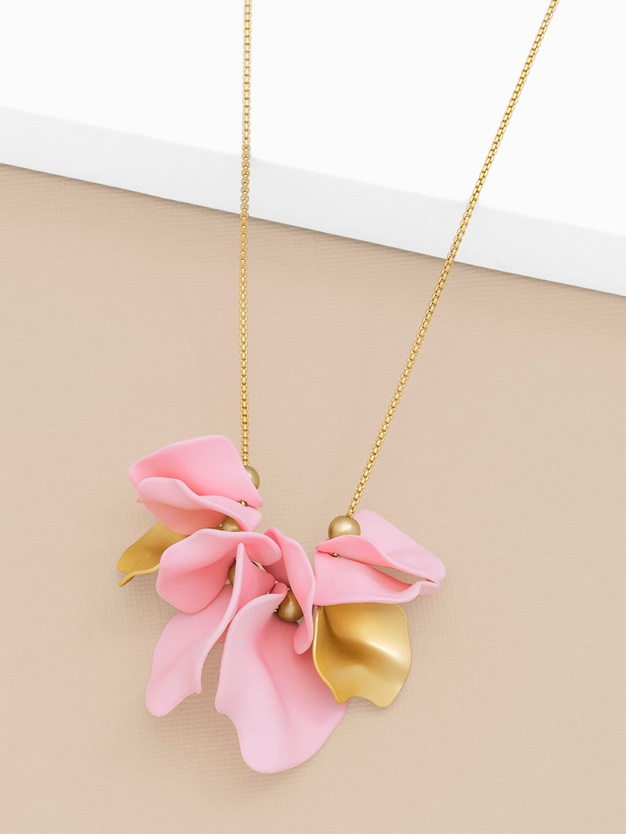 Bring the garden to you with Lily. Floral petals on a long dainty chain is a feminine touch to any outfit.
