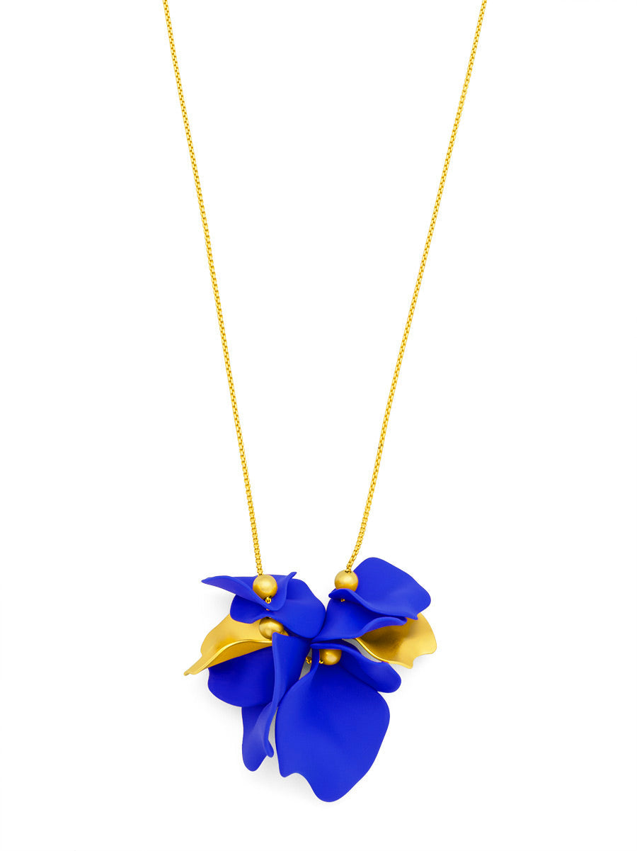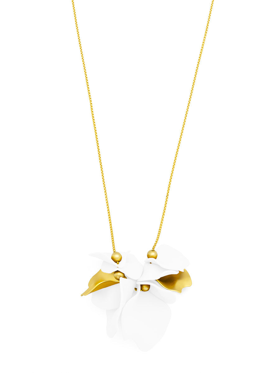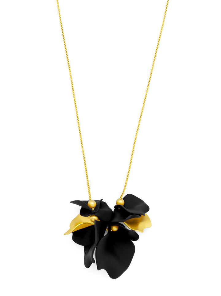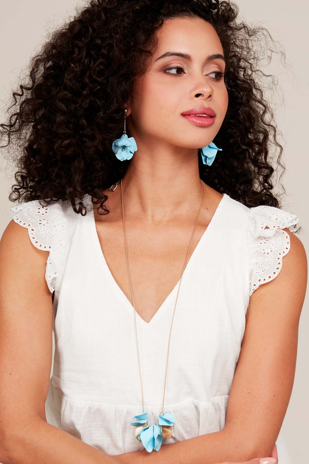 Bring the garden to you with Lily. Floral petals on a long dainty chain is a feminine touch to any outfit.