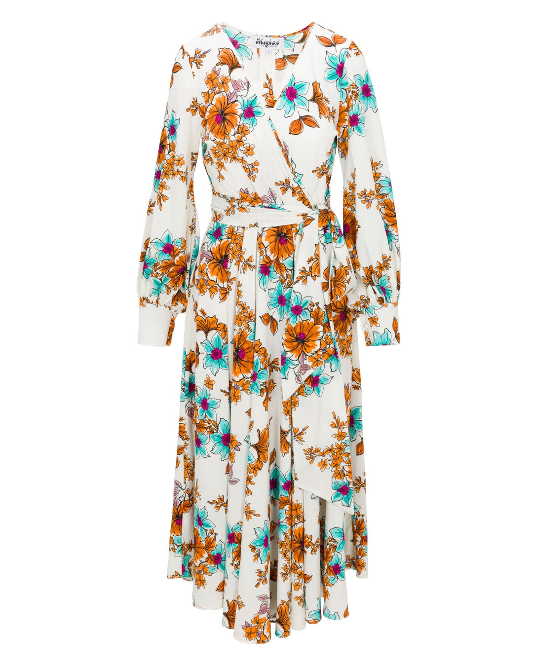 This 70's inspired midi dress features a sexy cross front V-shaped surplice neckline.