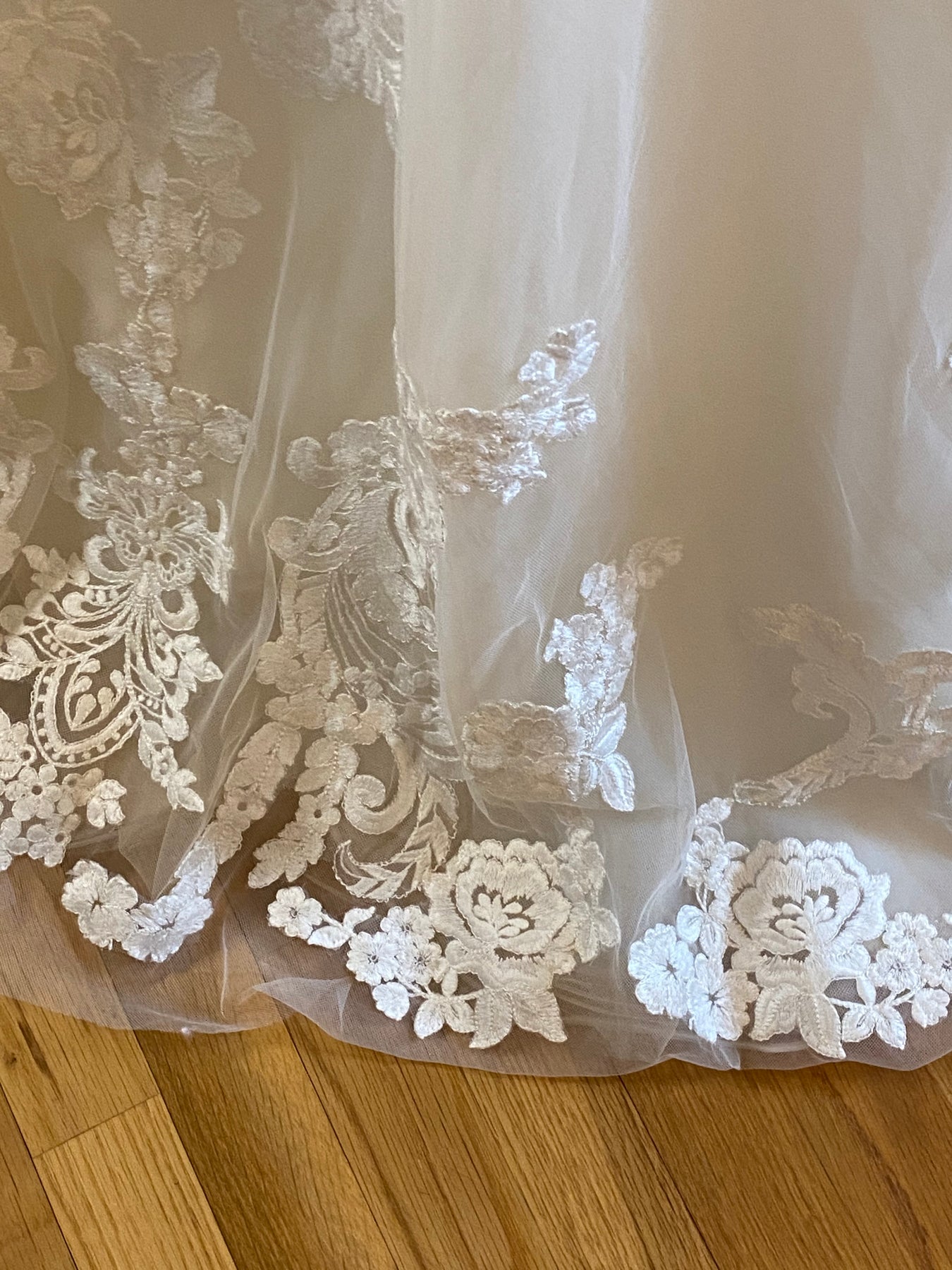 Sale wedding dresses, bridal party dresses and bridal accessories come to us directly from small independent retailers and brands and are mostly discontinued samples.  This merchandise has never been previously purchased or altered, and while most of these goods are in immaculate condition normal wear and tear can occur during previous try on.  Any defects outside of normal wear are disclosed in each listing.