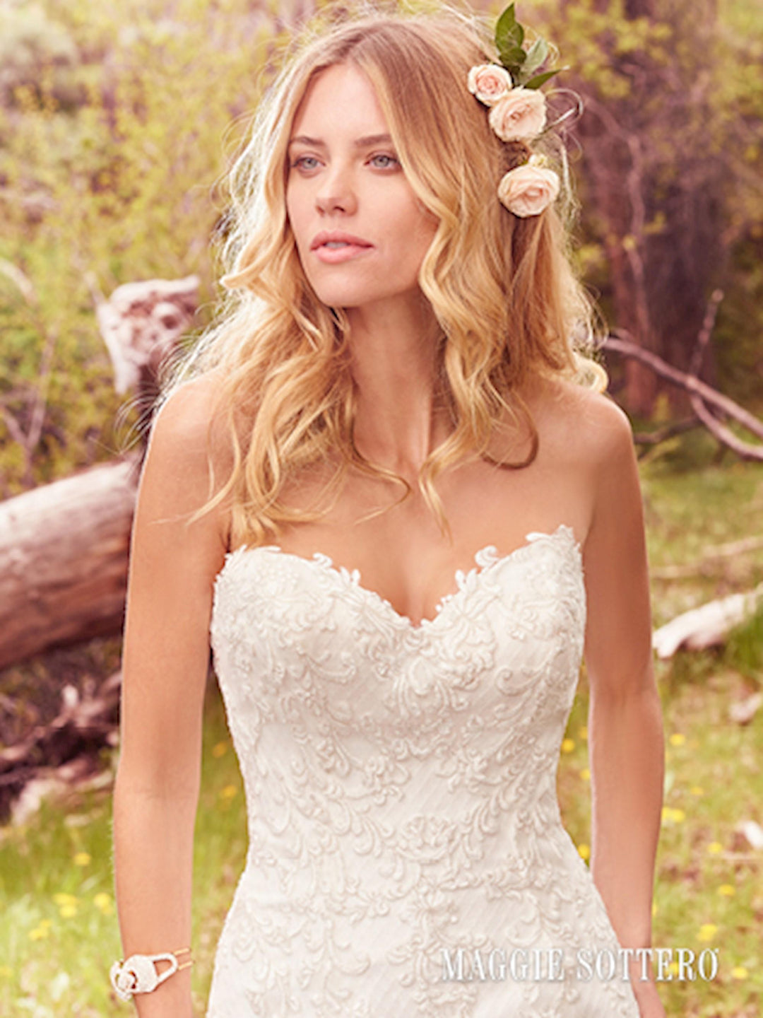 Details: Buttons down zipper; Strapless; Sweetheart Neckline