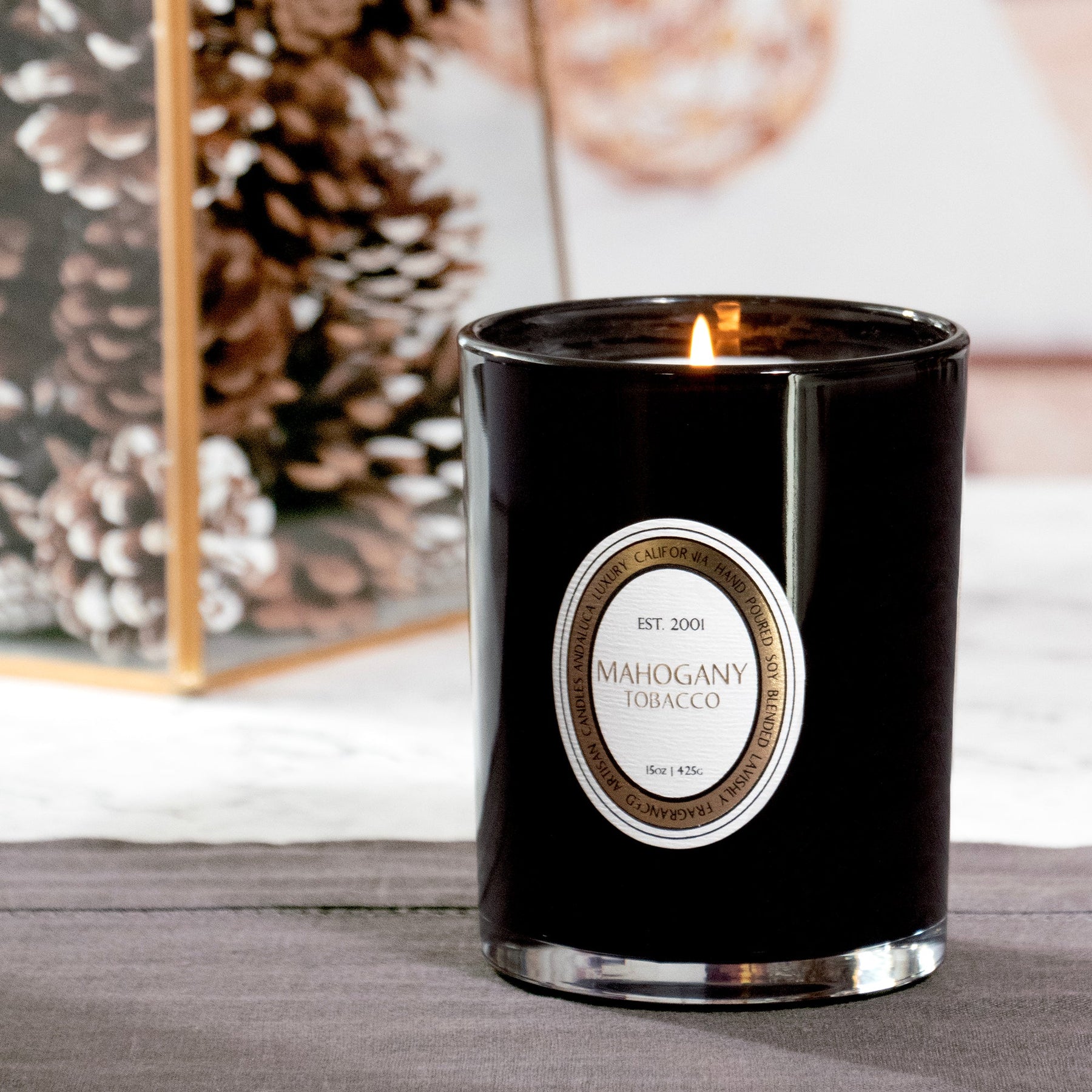 Mahogany Tobacco 15 oz. Glass Candle by Andaluca Home