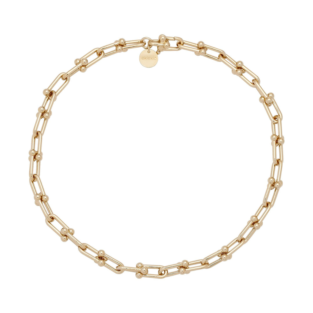 The Margaux Necklace is made from our U link chain fastened with a with a custom U link clasp. The necklace is a perfect stand alone piece, or care to make a statement? Pair it with any of our chains to make more of an impact.