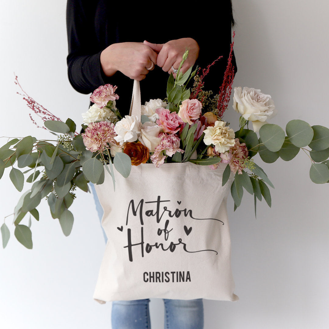 Matron of Honor Personalized Wedding Cotton Canvas Tote Bag by The Cotton & Canvas Co.