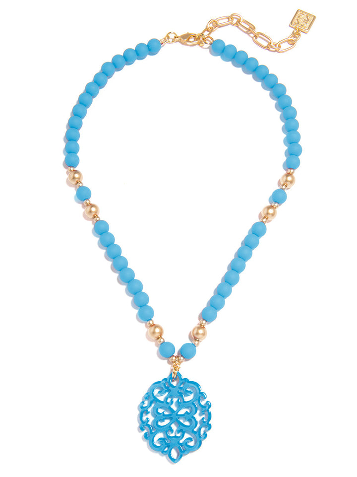 Designed with matte beads and a signature pendant silhouette, this modern and feminine necklace adds an element of charm and allure to your look.