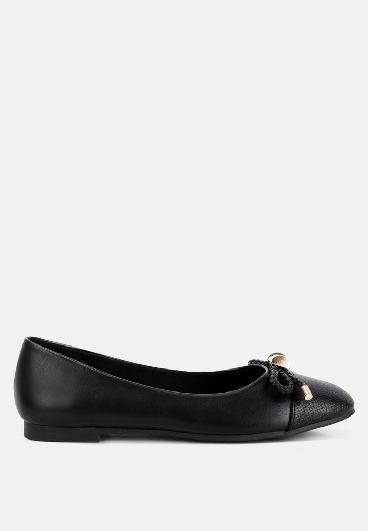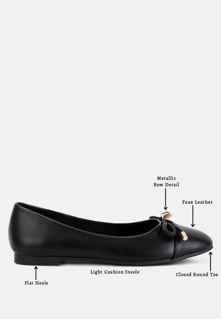 Going for a cozy cinema date? Pair your outfit with our Metallic Embellished Flat Ballerinas and never worry for an outfit mismatch. The ballerina flats come with a metallic embellishment on top, making you look Uber chic. The lightly padded insole keeps your feet happy throughout.  These ballerina shoes are closed toe, giving you a super glam look.