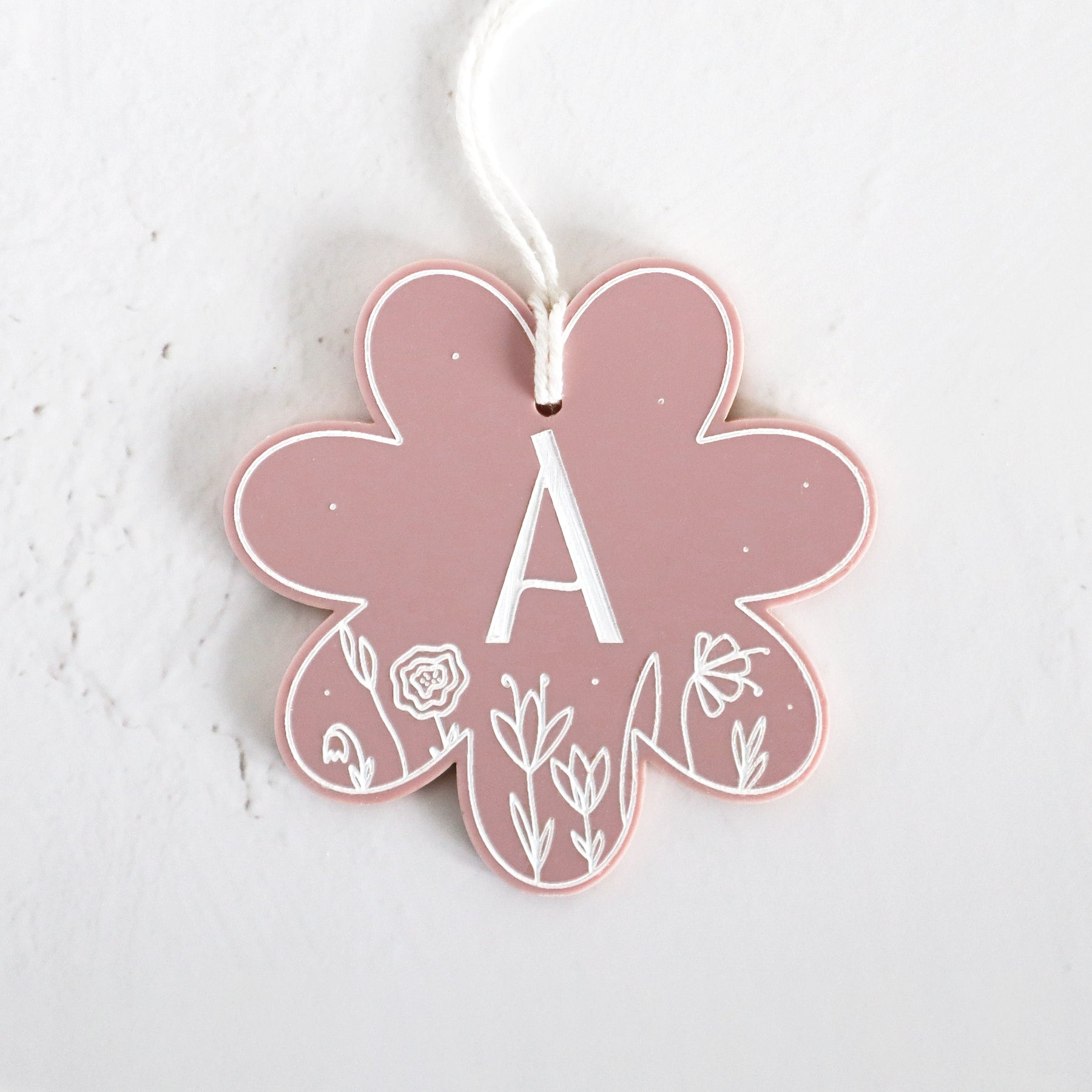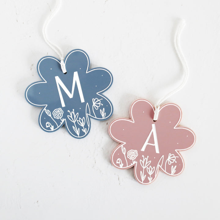 The acrylic daisy monogram gift tag is a colorful and customizable accessory that can add a touch of personalization to any gift. Measuring approximately 3.5 inches in width, this gift tag features a hand-drawn daisy floral design and a customizable monogram in the center.