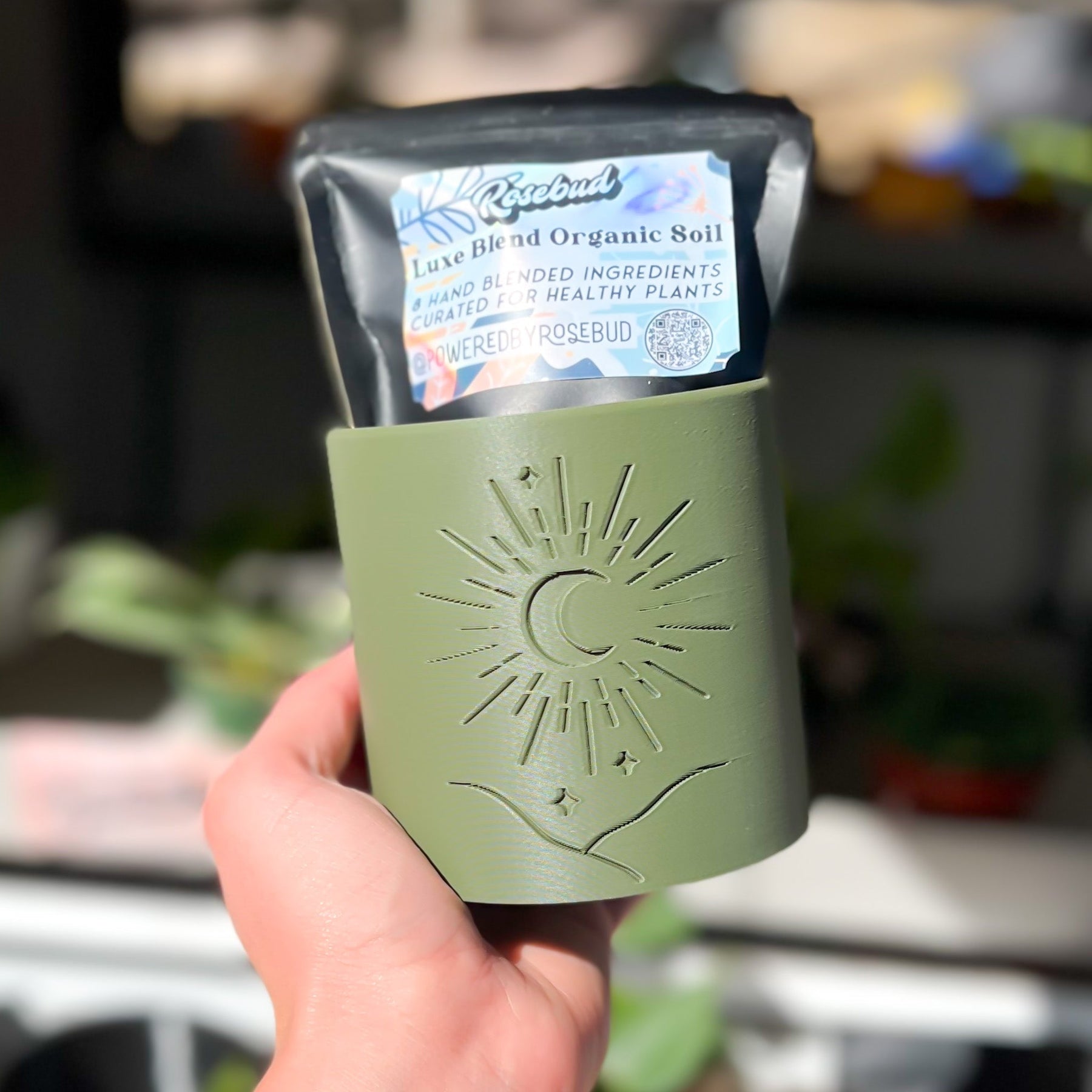 Our planters are 3D printed with PLA - a type of thermoplastic polymer derived from Upcycled materials like Corn, Beets, and Wheat Grass. PLA is 100% biodegradable, recyclable and compostable!