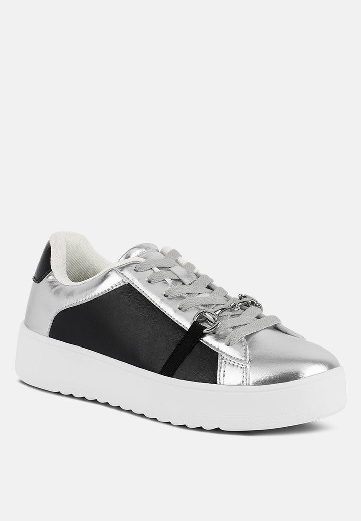 The faux leather sneakers are all about that metallic magic with the elevation of the horsebit embellishment. The chunky sneakers are all about making a statement and we're here for it!