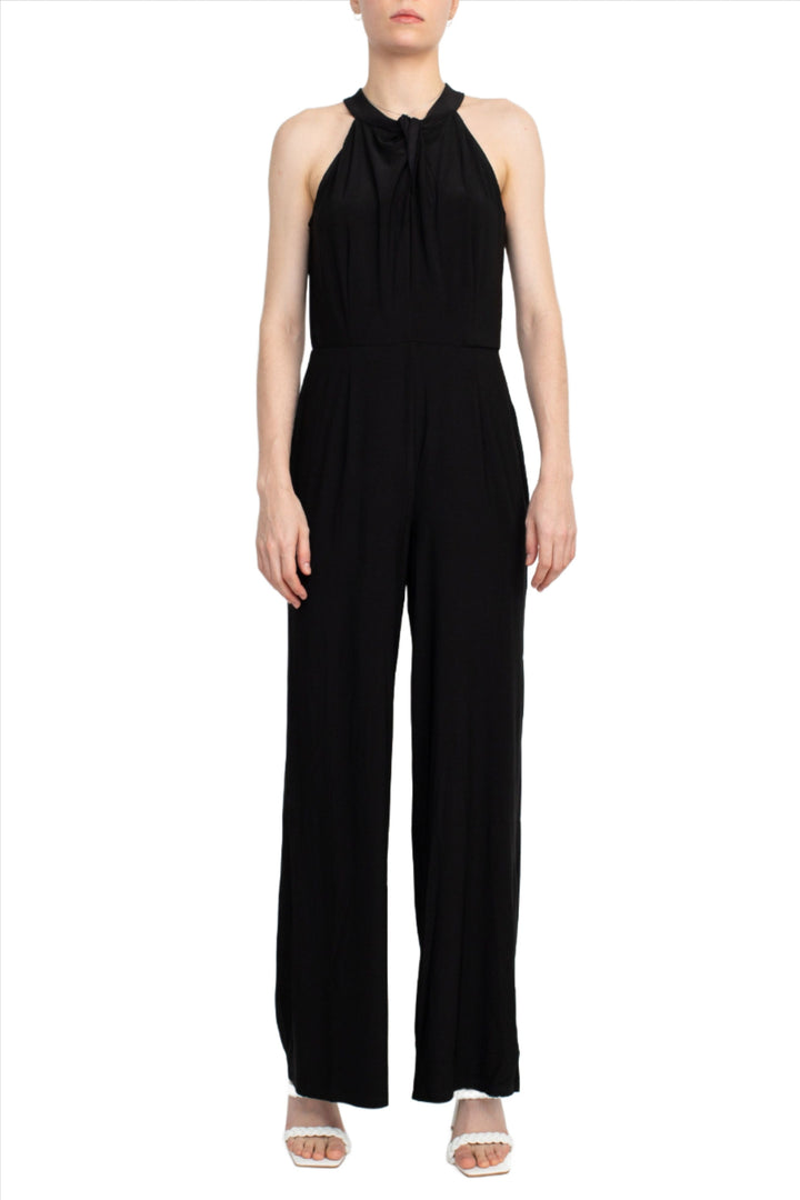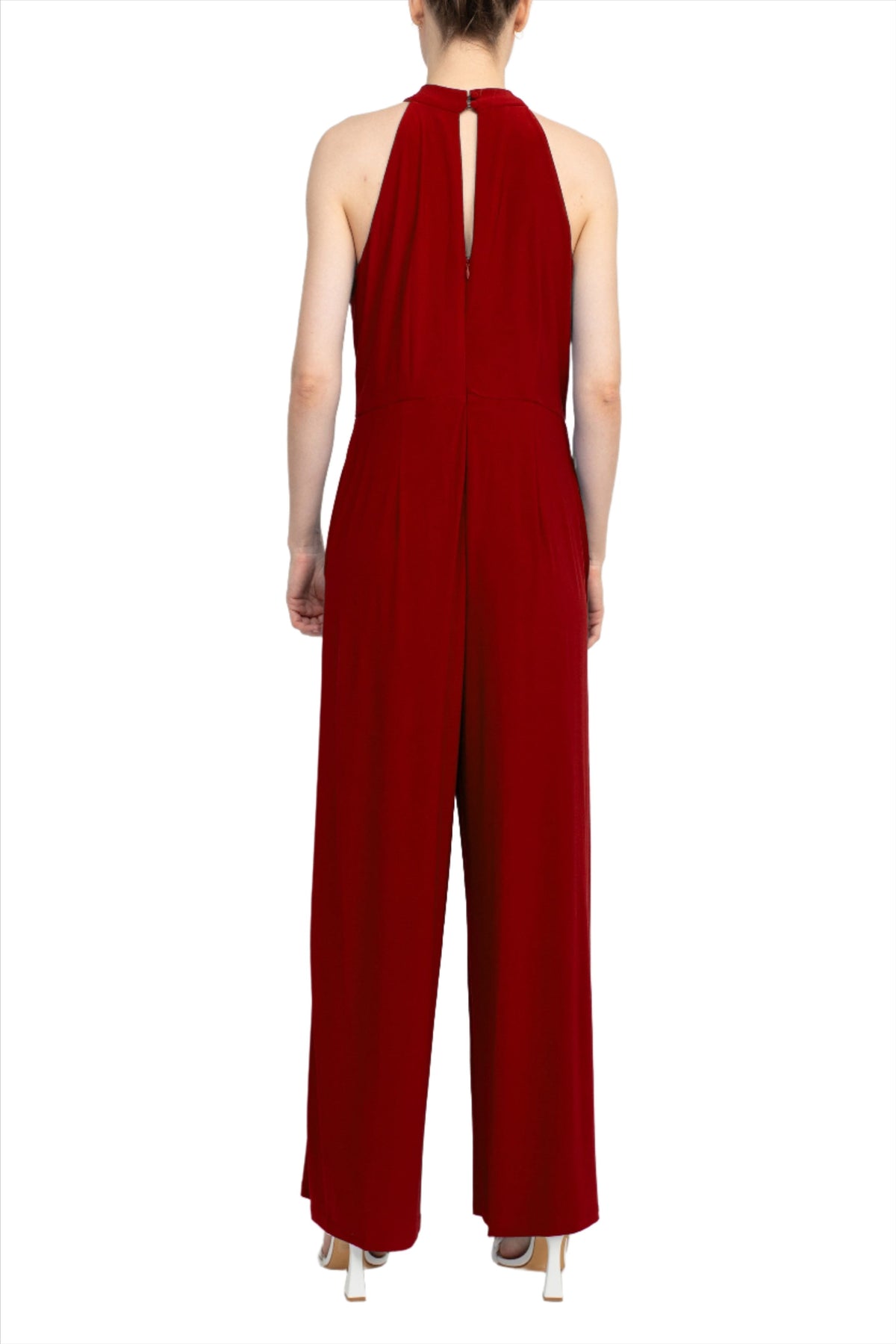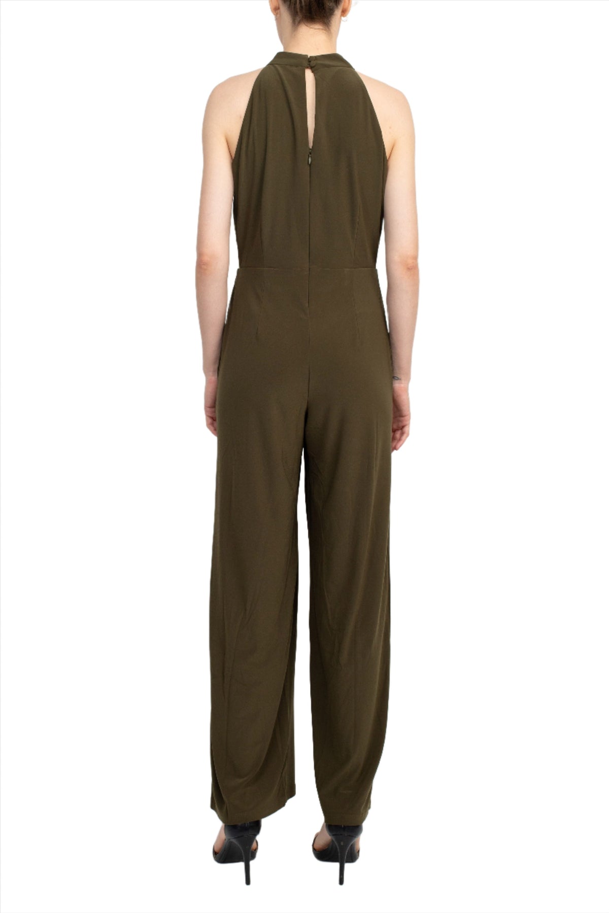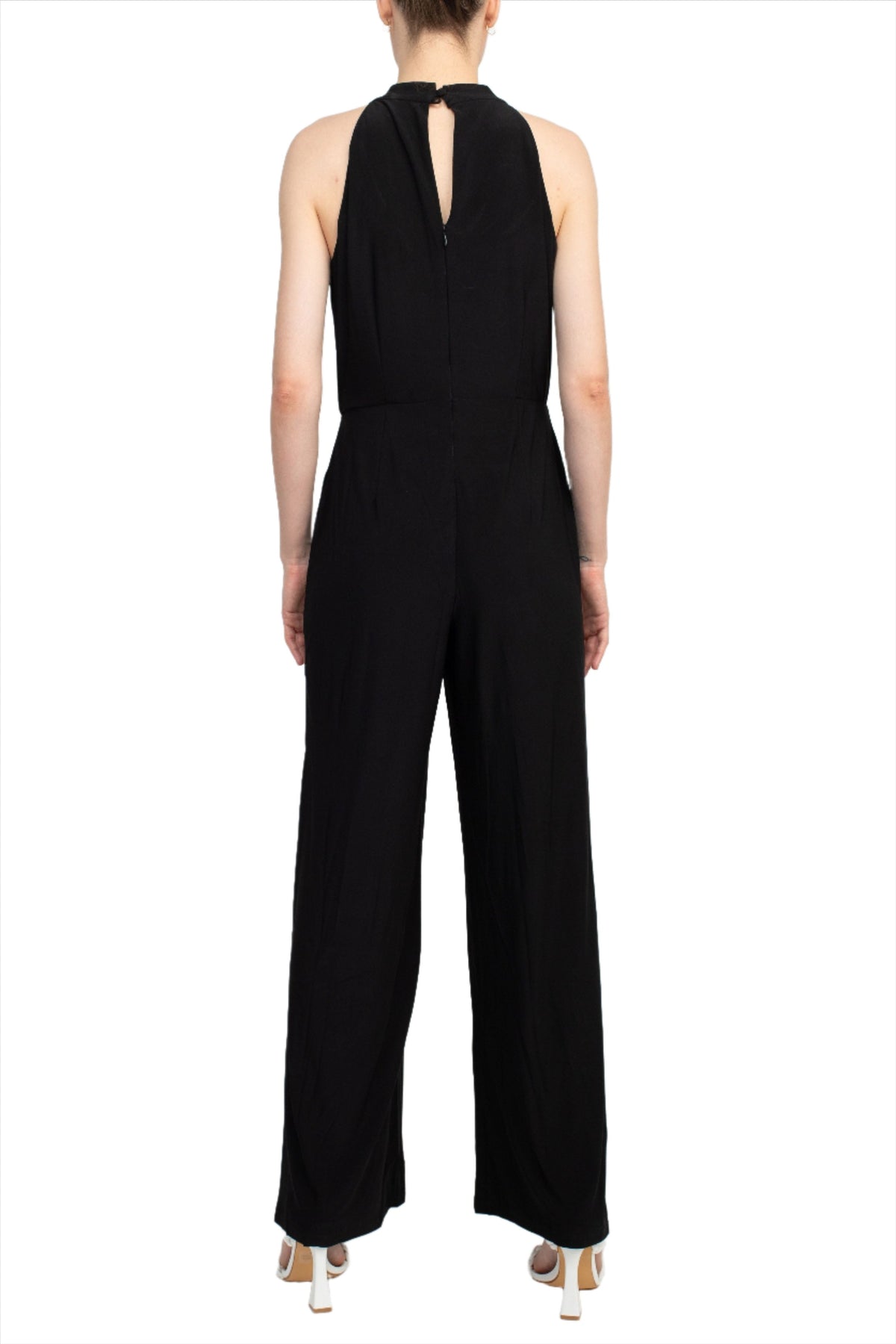 Nina Leonard Crossed Neck Sleeveless Keyhole Back Solid Jersey Jumpsuit