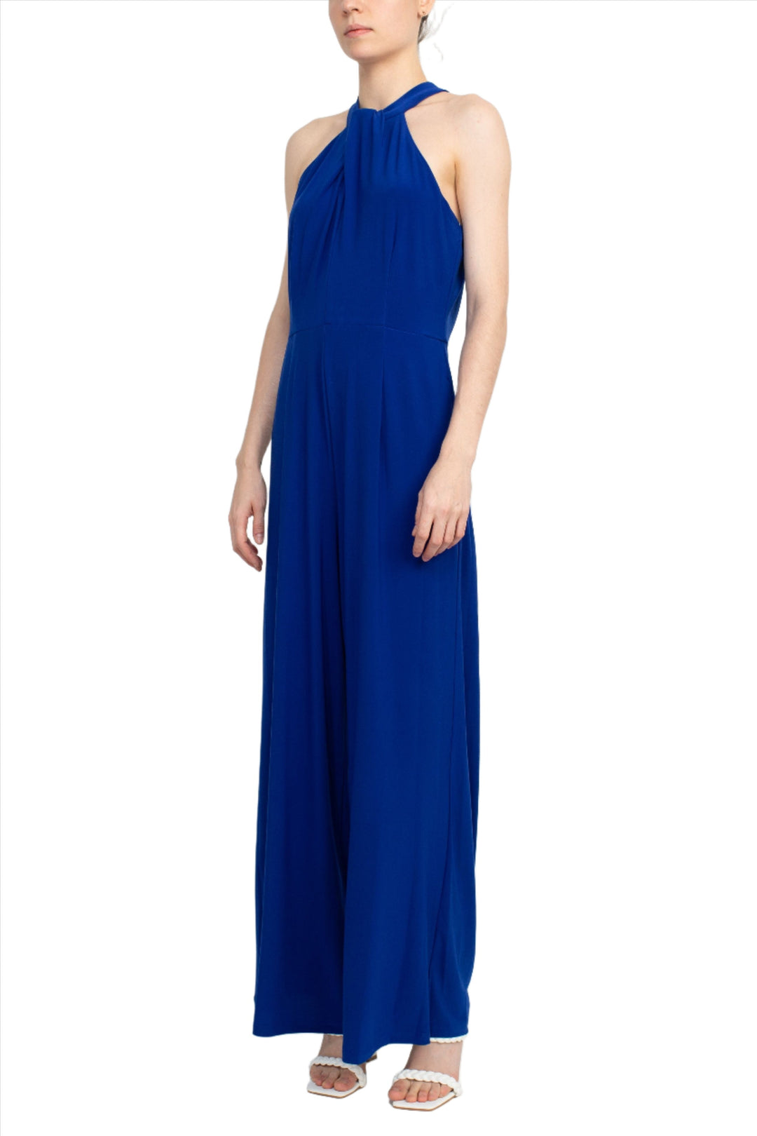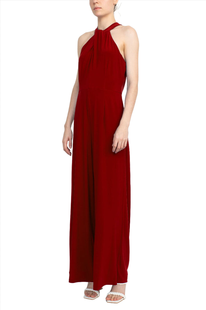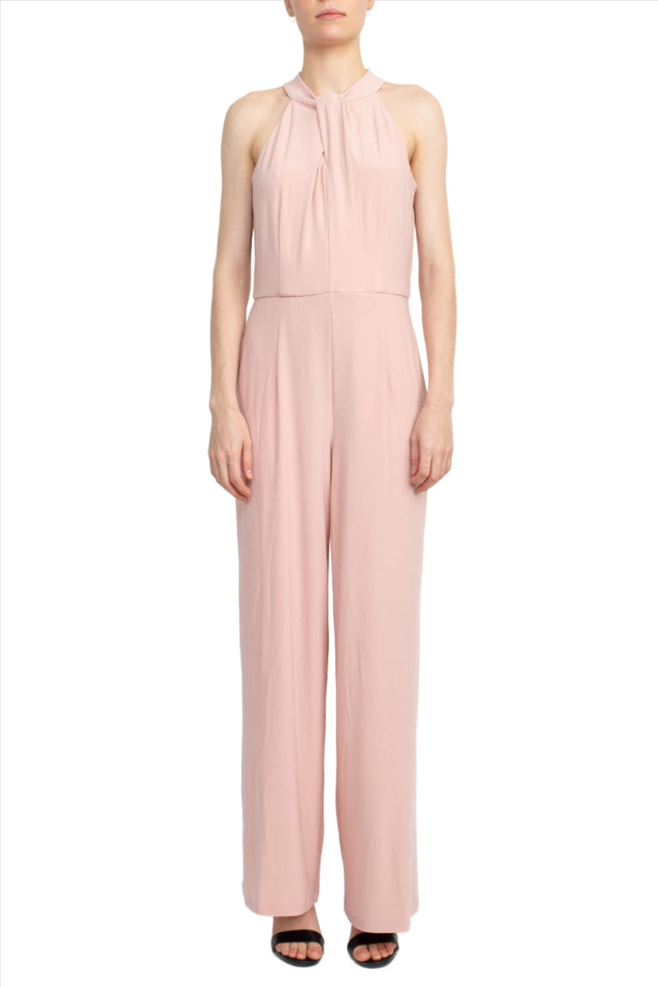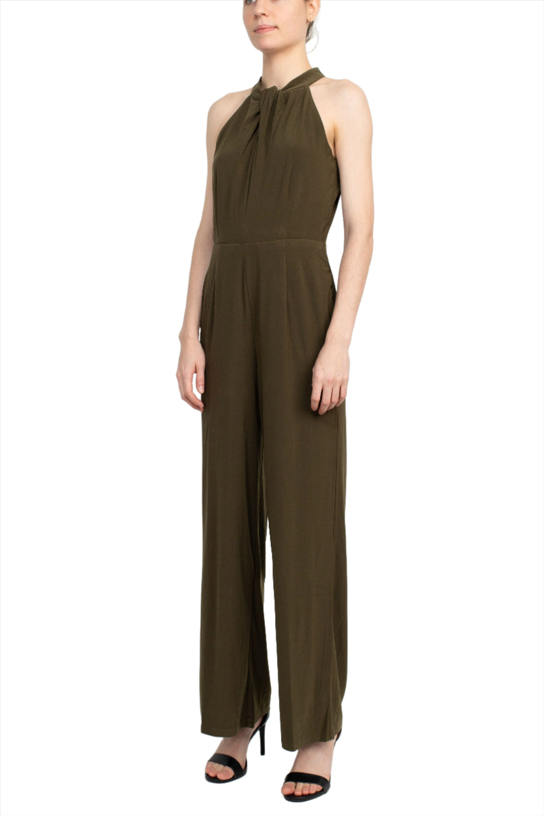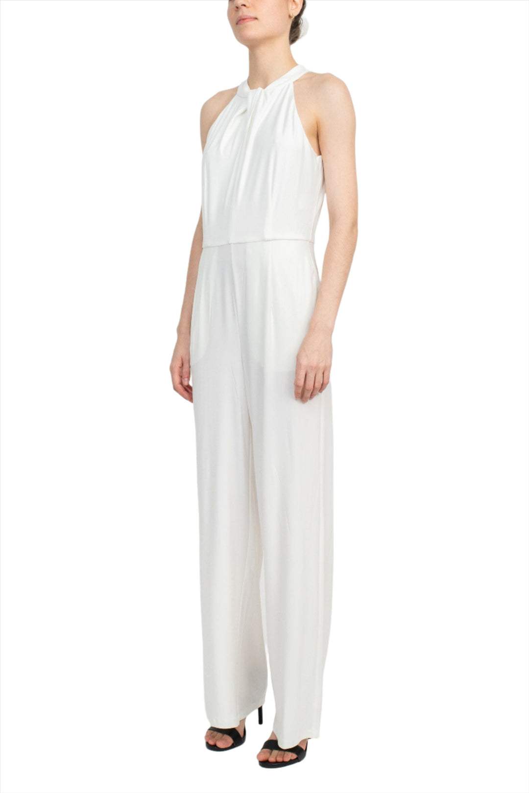 Nina Leonard Crossed Neck Sleeveless Keyhole Back Solid Jersey Jumpsuit