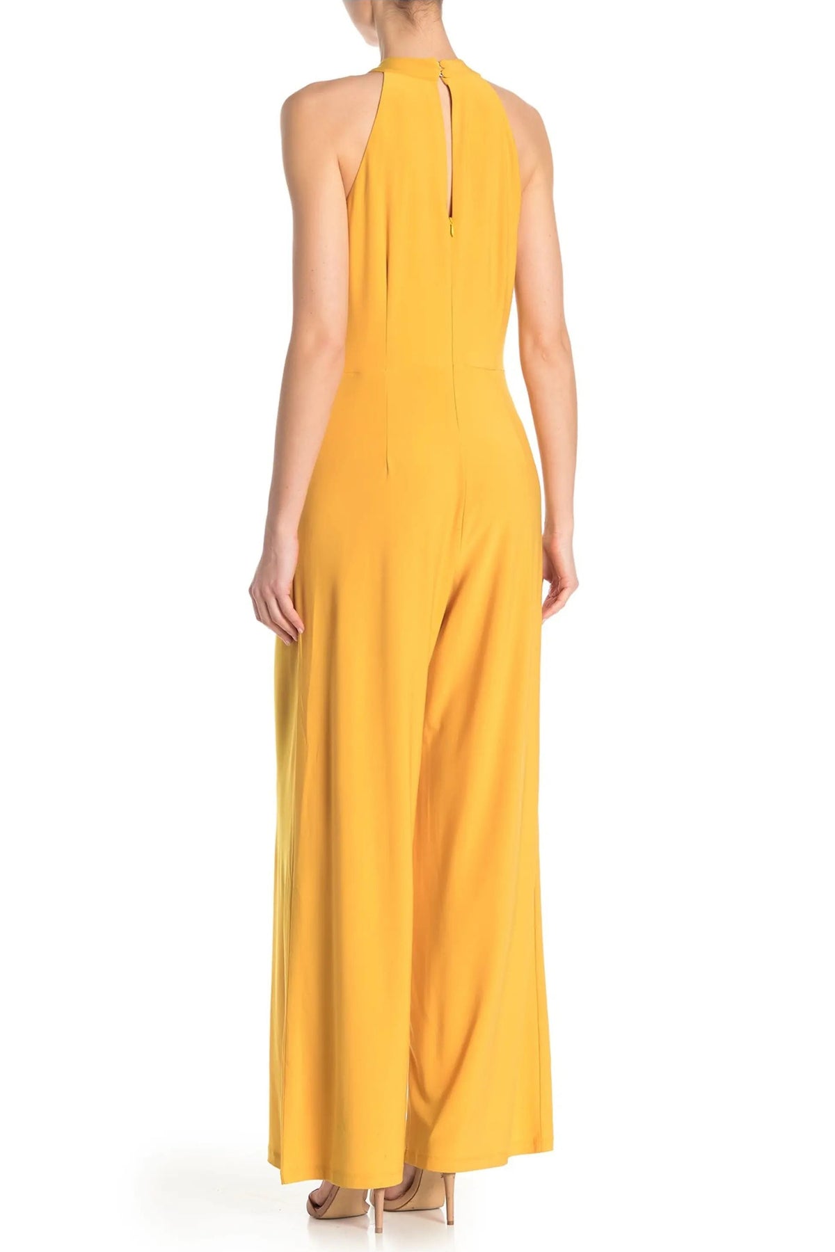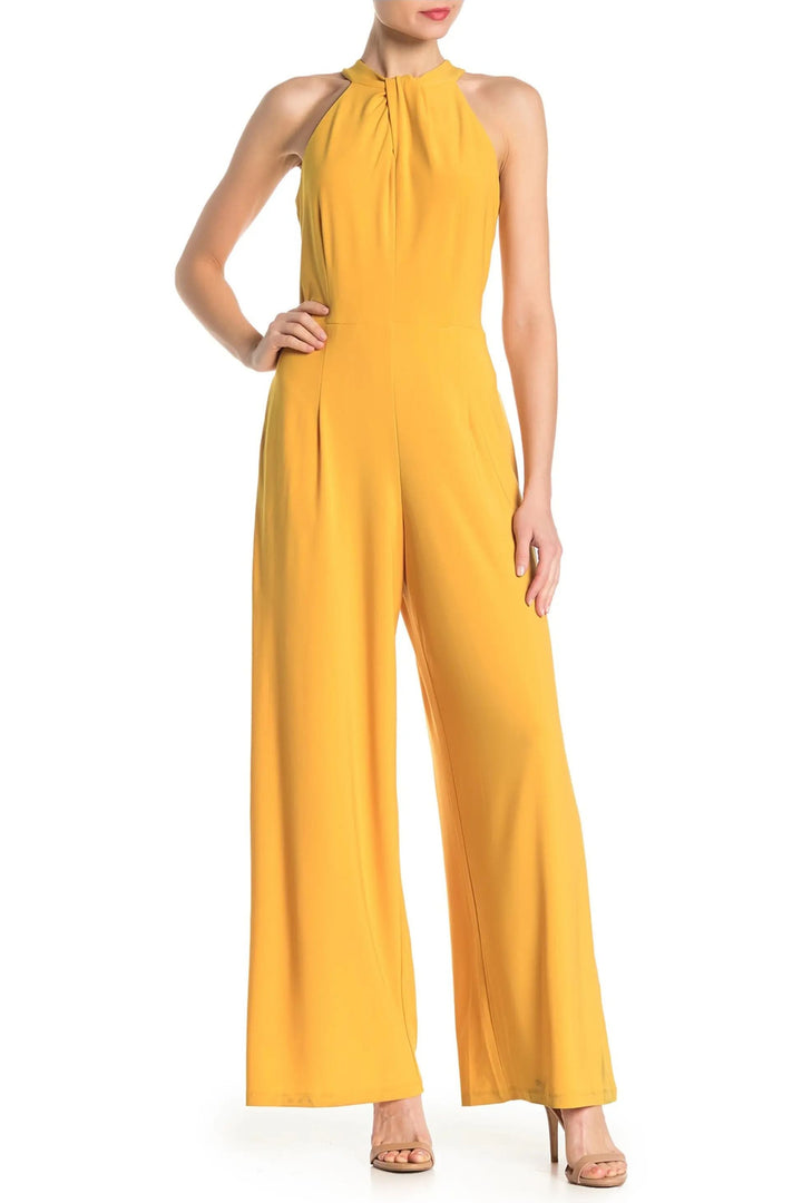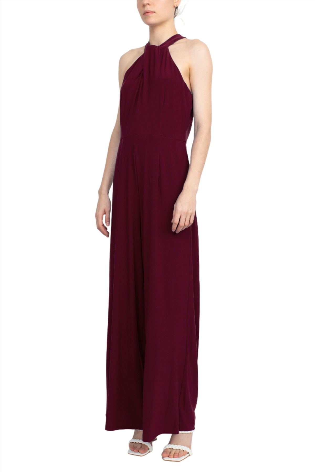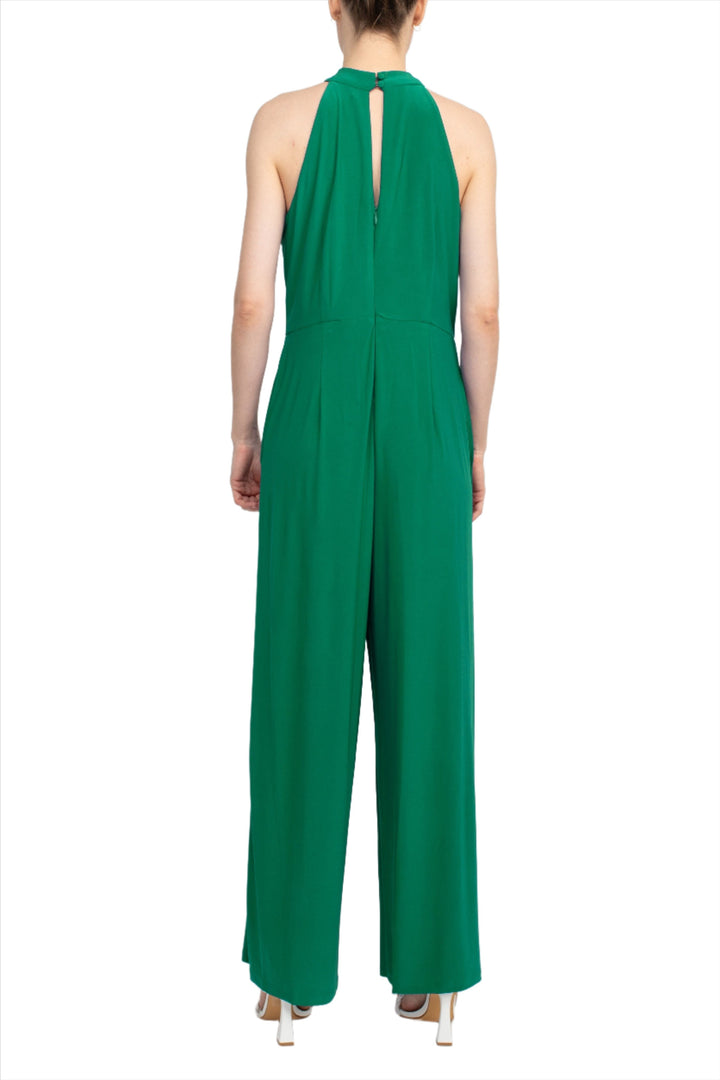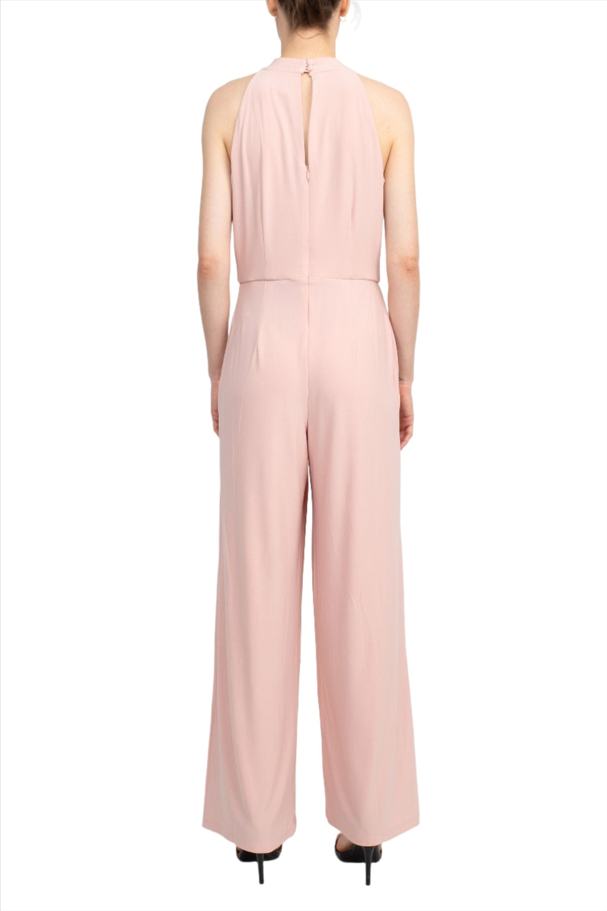 • The keyhole back detail lends an unexpected element of allure, creating visual interest and enchanting the overall elegance of the jumpsuit.