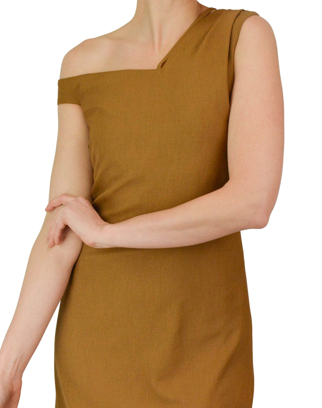 • Sleeveless with an asymmetric cutout off-shoulder neckline