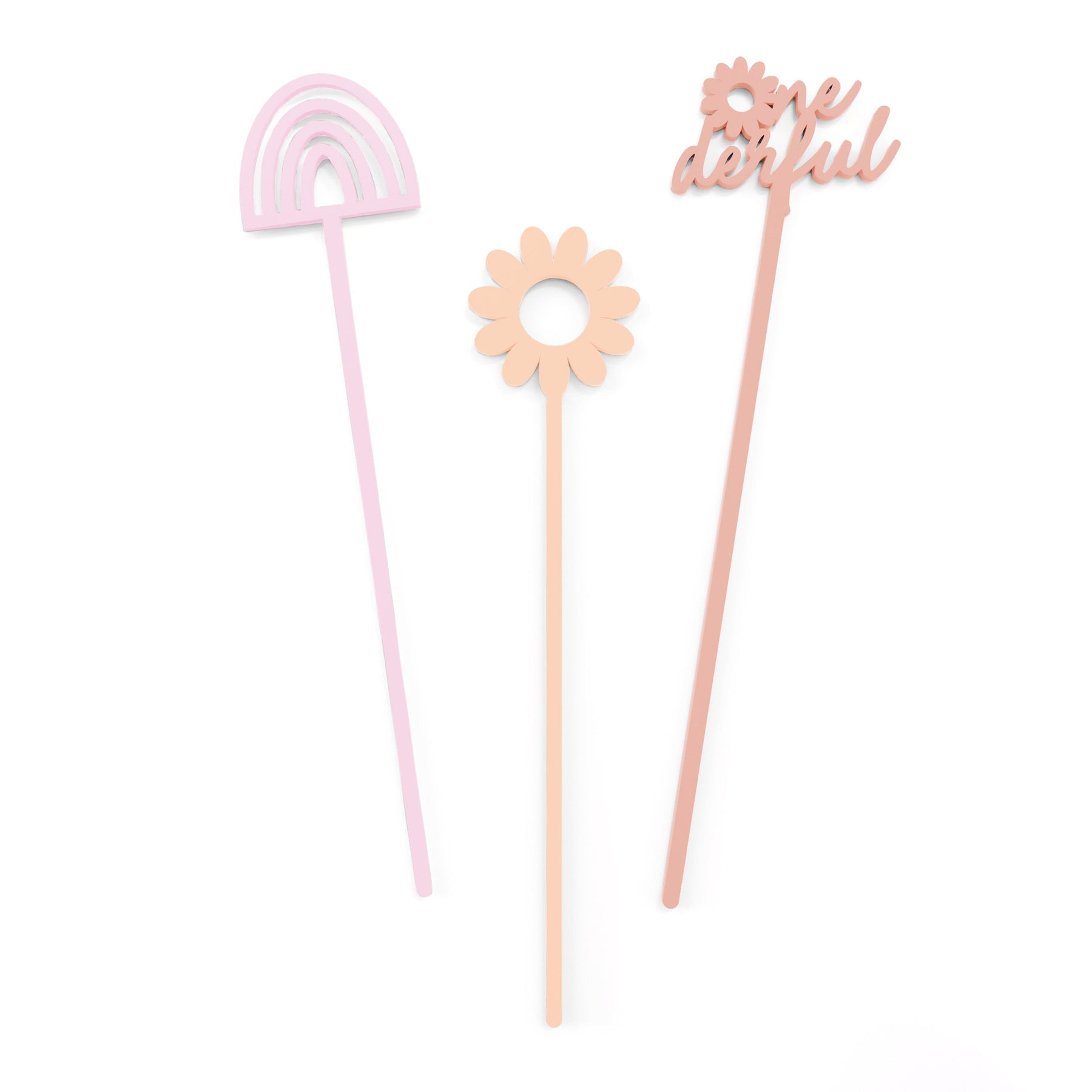 Hosting a Onederful themed birthday party? Look no further! These daisy-inspired stirrers perfectly complement the theme, adding a touch of elegance and playfulness to your table settings. Imagine the joy on your little one's face as they sip their favorite beverage adorned with these daisy, rainbow or "Onederful" themed cocktail stirrers.